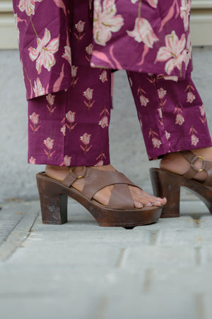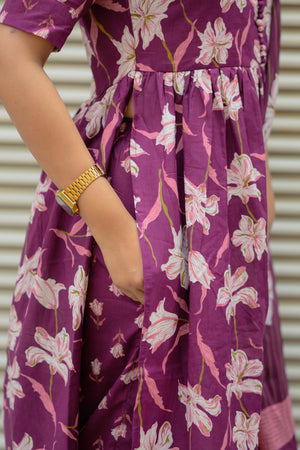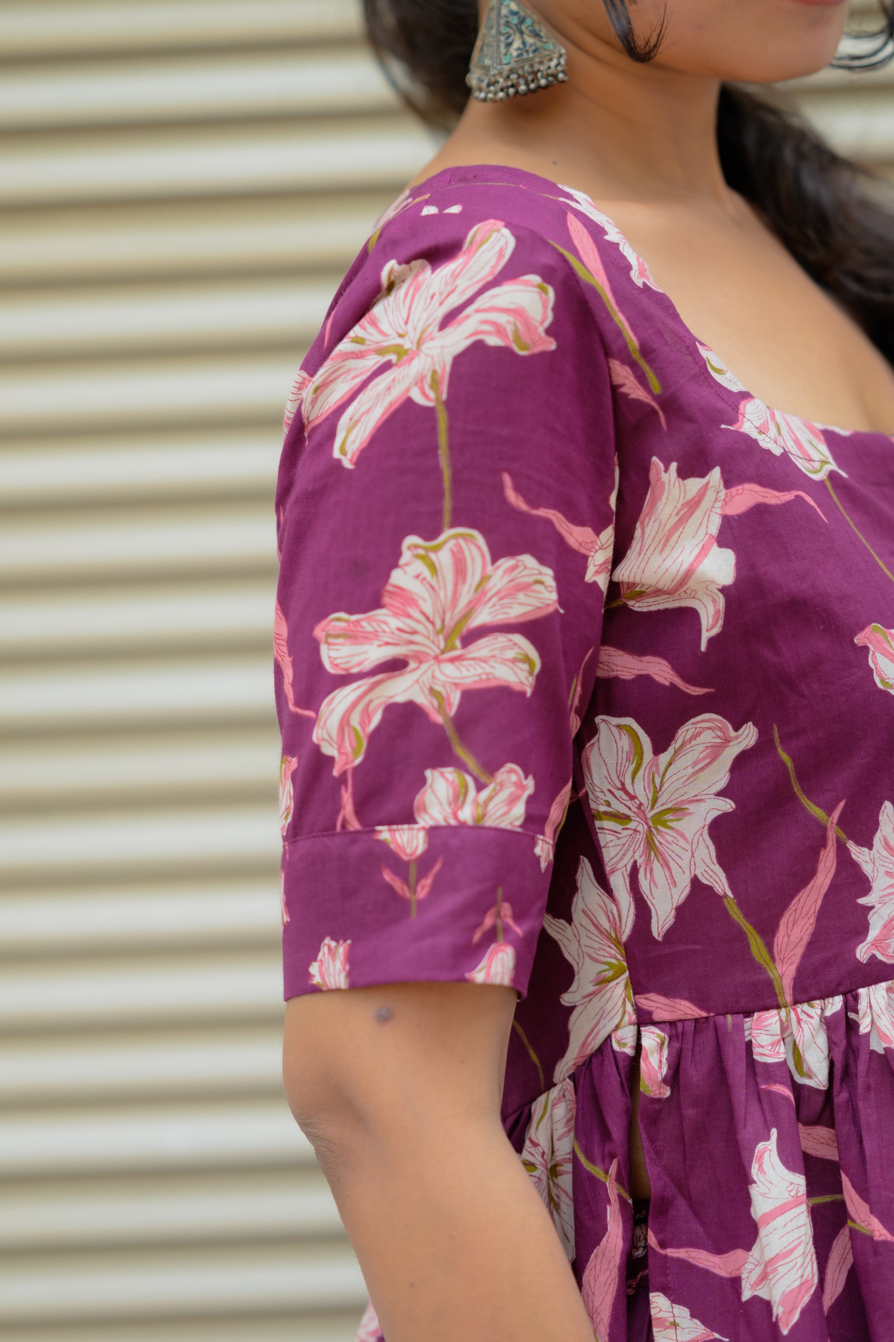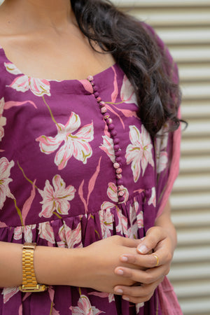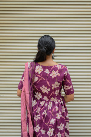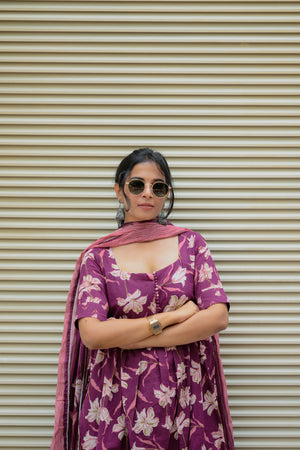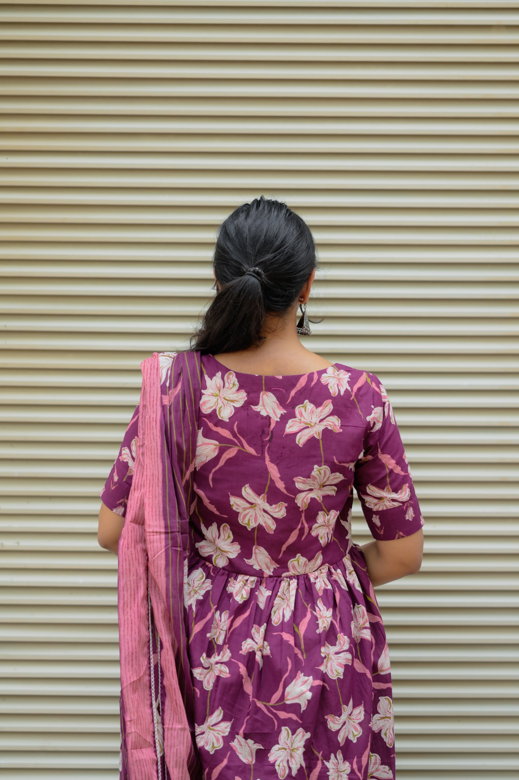 Aaradhana wine - organic cotton tulip anarkali suit set in wine