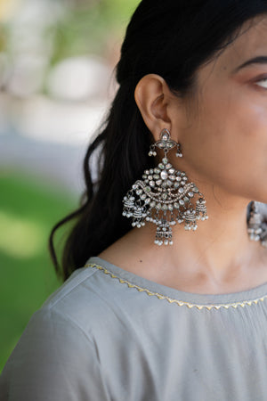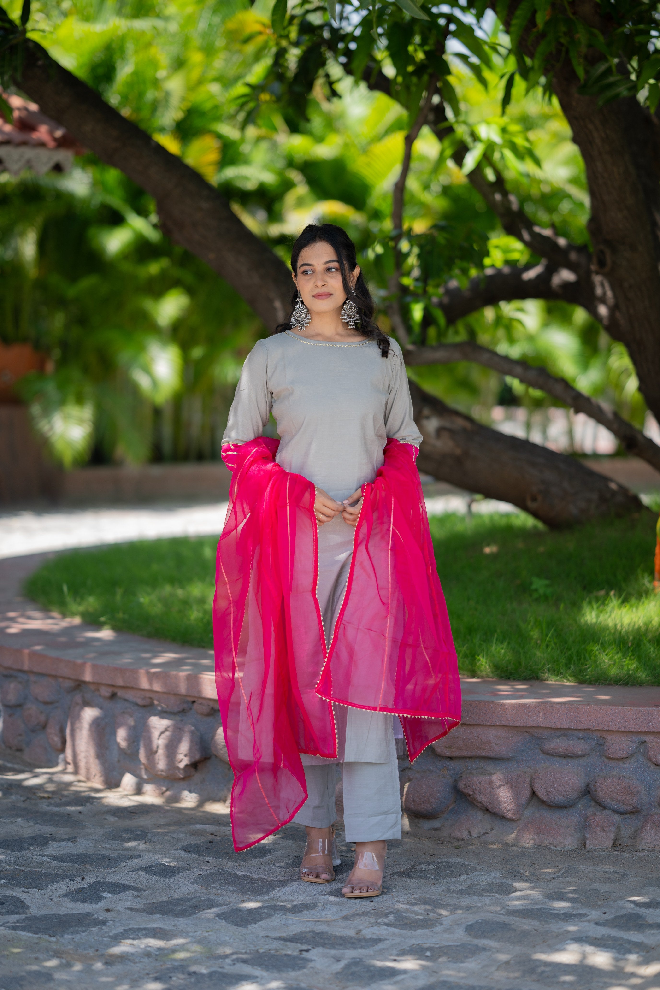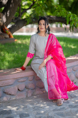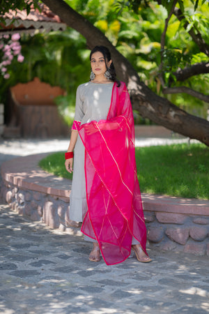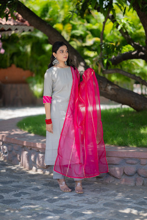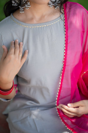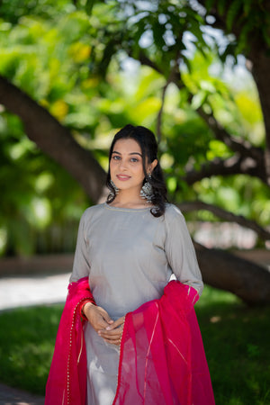 Akshi ( grey ) - shimmer silk kurta set with organza dupatta with gota