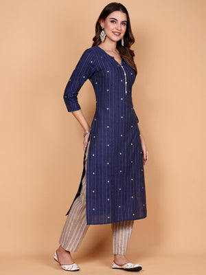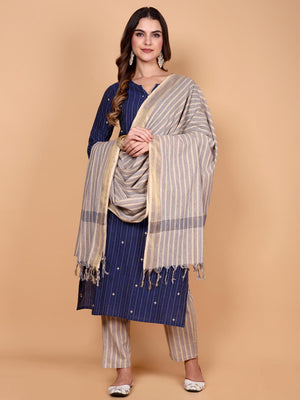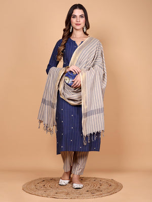 Ambrini - handloom cotton suit set in royal blue colour