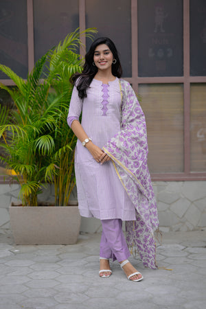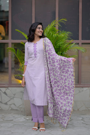 Barkavi ( purple ) - handloom cotton suit set with pen kalamkari dupatta in purple