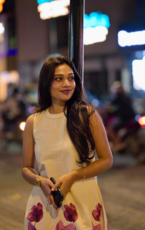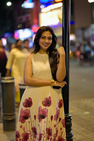 Boho ( peach) - floral cotton flex coord set in white and peach