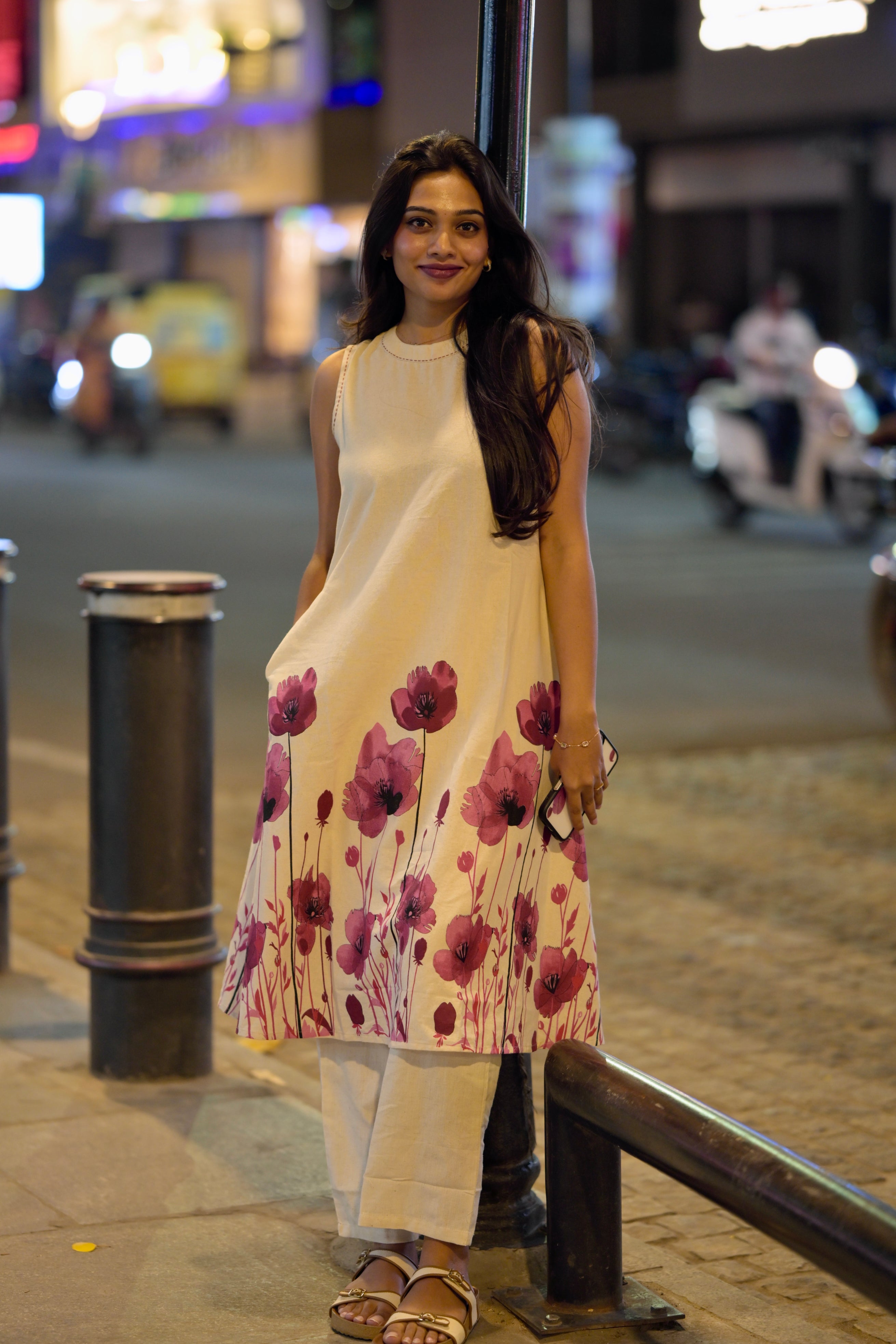 This Floral Cotton flex Co-ord Set is a bouquet of fashion for your wardrobe! Made of soft, breathable cotton, with white cotton flex pants is perfect for any occasion. Own any room with this stylish and playful ensemble!