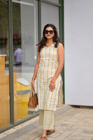 - smart V neck detailing, sleeveless with 15 inch sleeves attached inside kurta