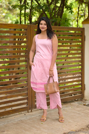cotton blend kurta set in pink