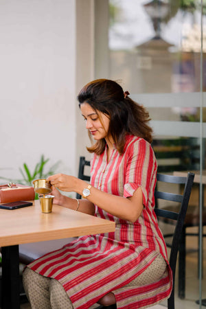 Budget Buys #10 - Cotton blend handwoven kurta set in rust red and ivory
