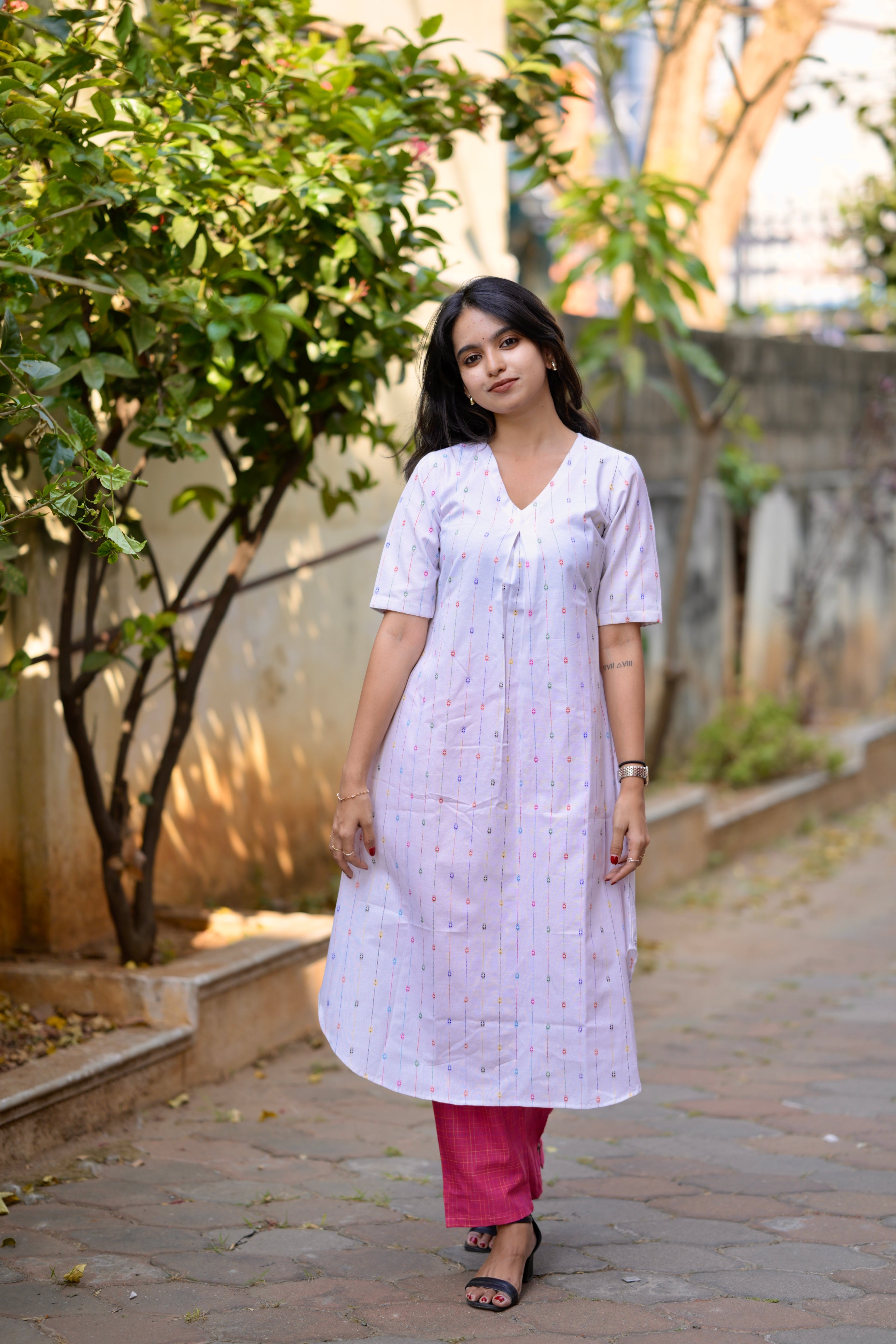 Budget Buys #21 - cotton blend A line kurta set in white & pink