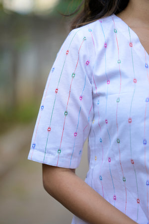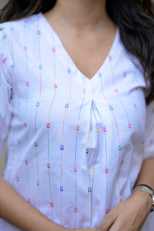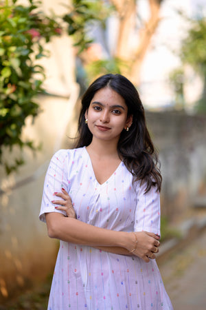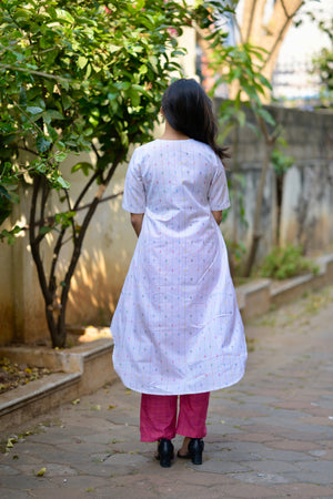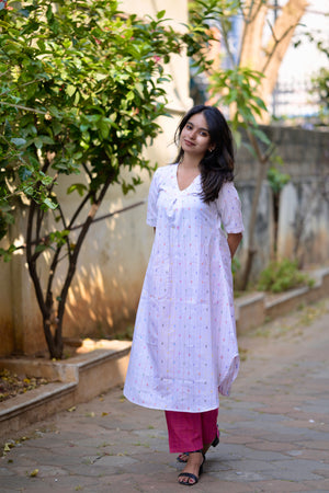- cotton blend A line kurta set in white & pink