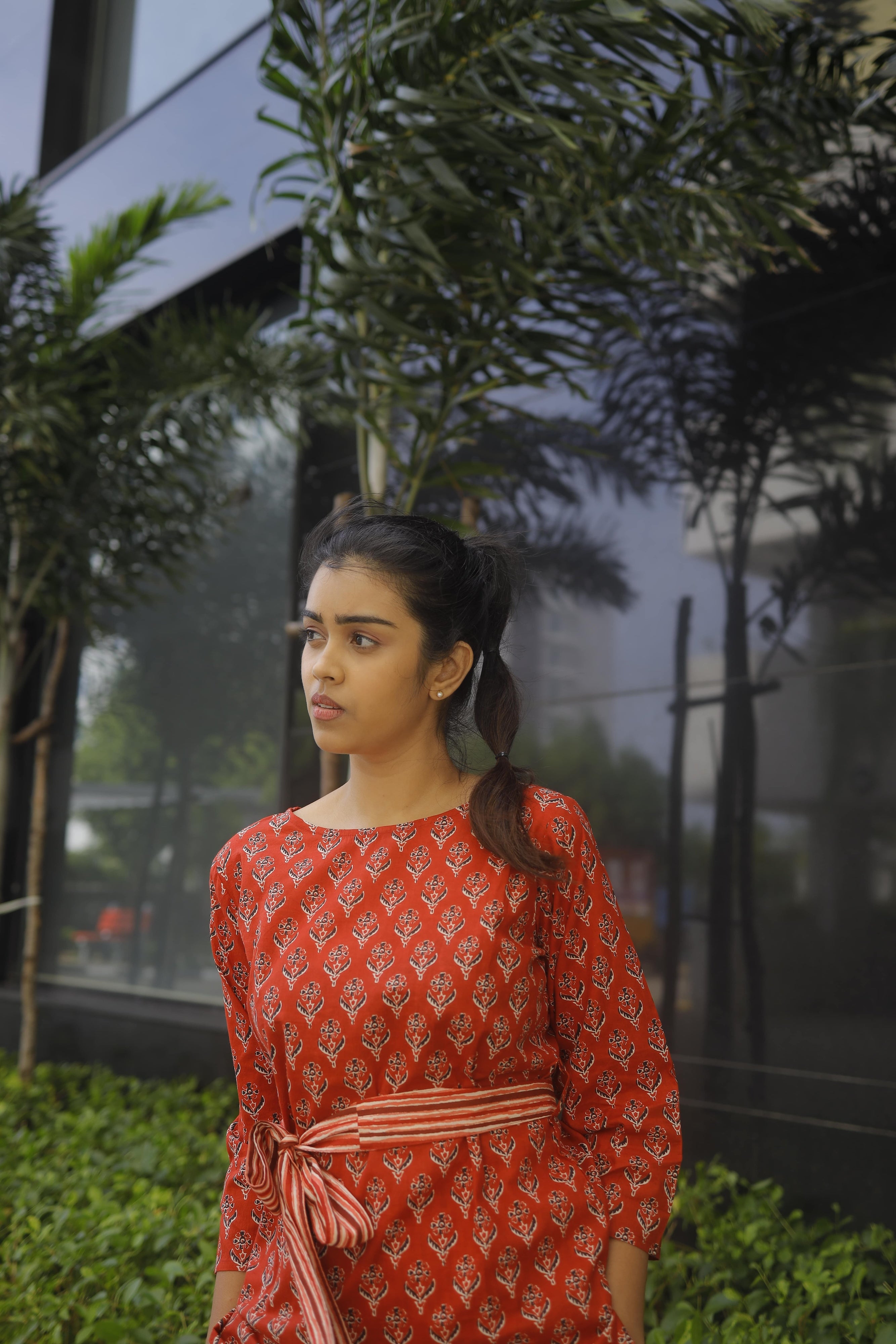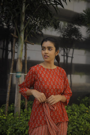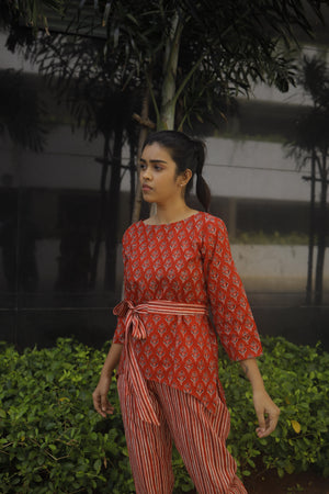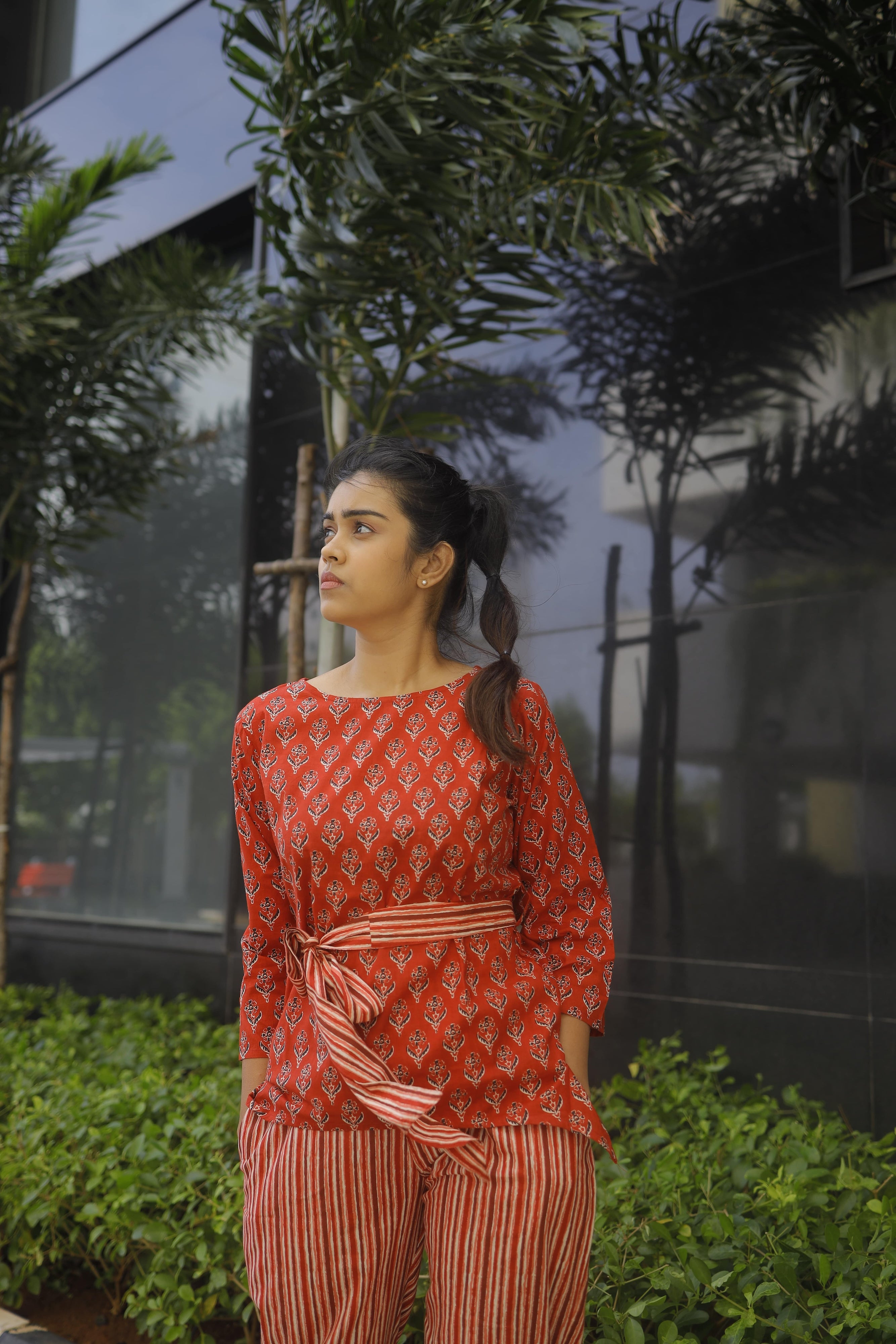 Carol Coord Set - Cotton two piece coord set with detachable tie around waistline in red