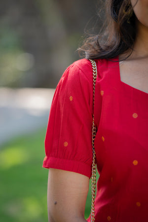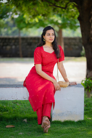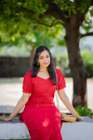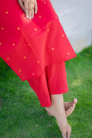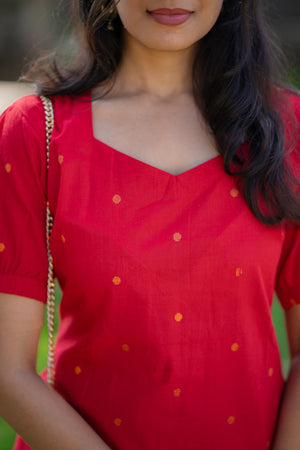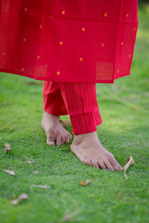 Charul ( red ) - handloom cotton kurta聽set