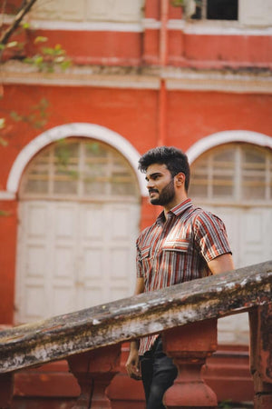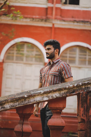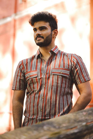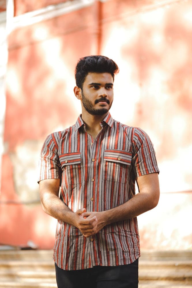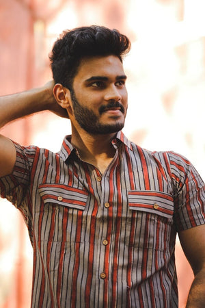 ciao stripped shirt - handblock stripped organic cotton shirt in red and grey