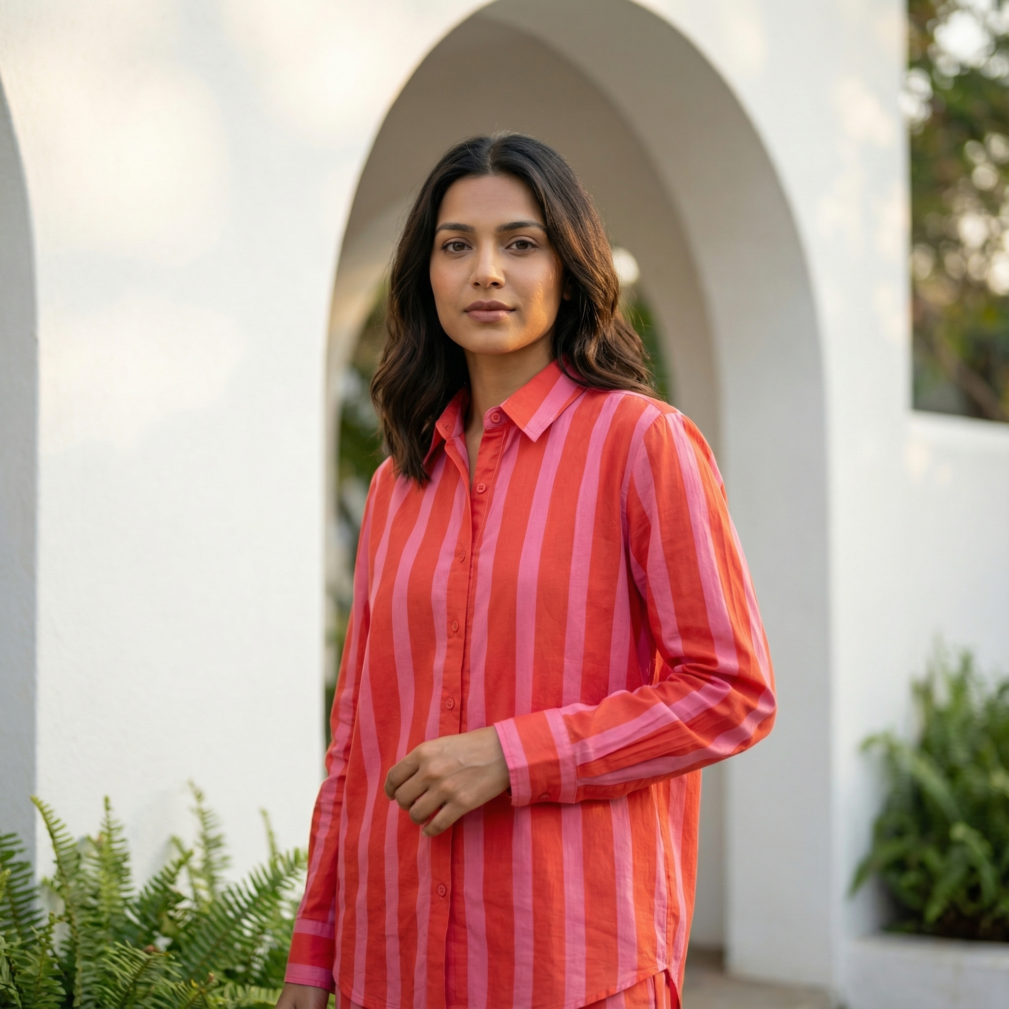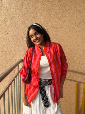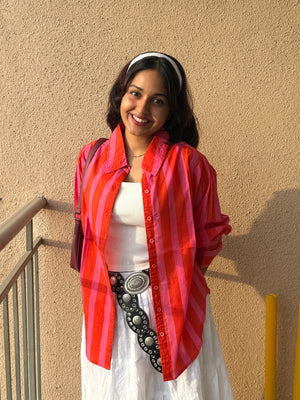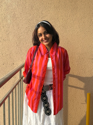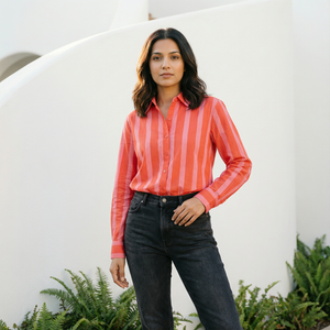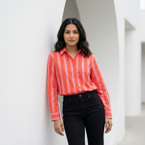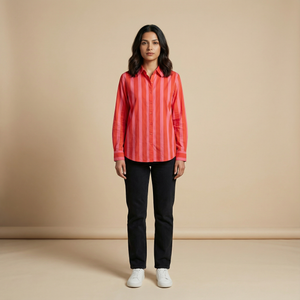 Women's shirt 3 - promenade striped cotton shirt in pink and red