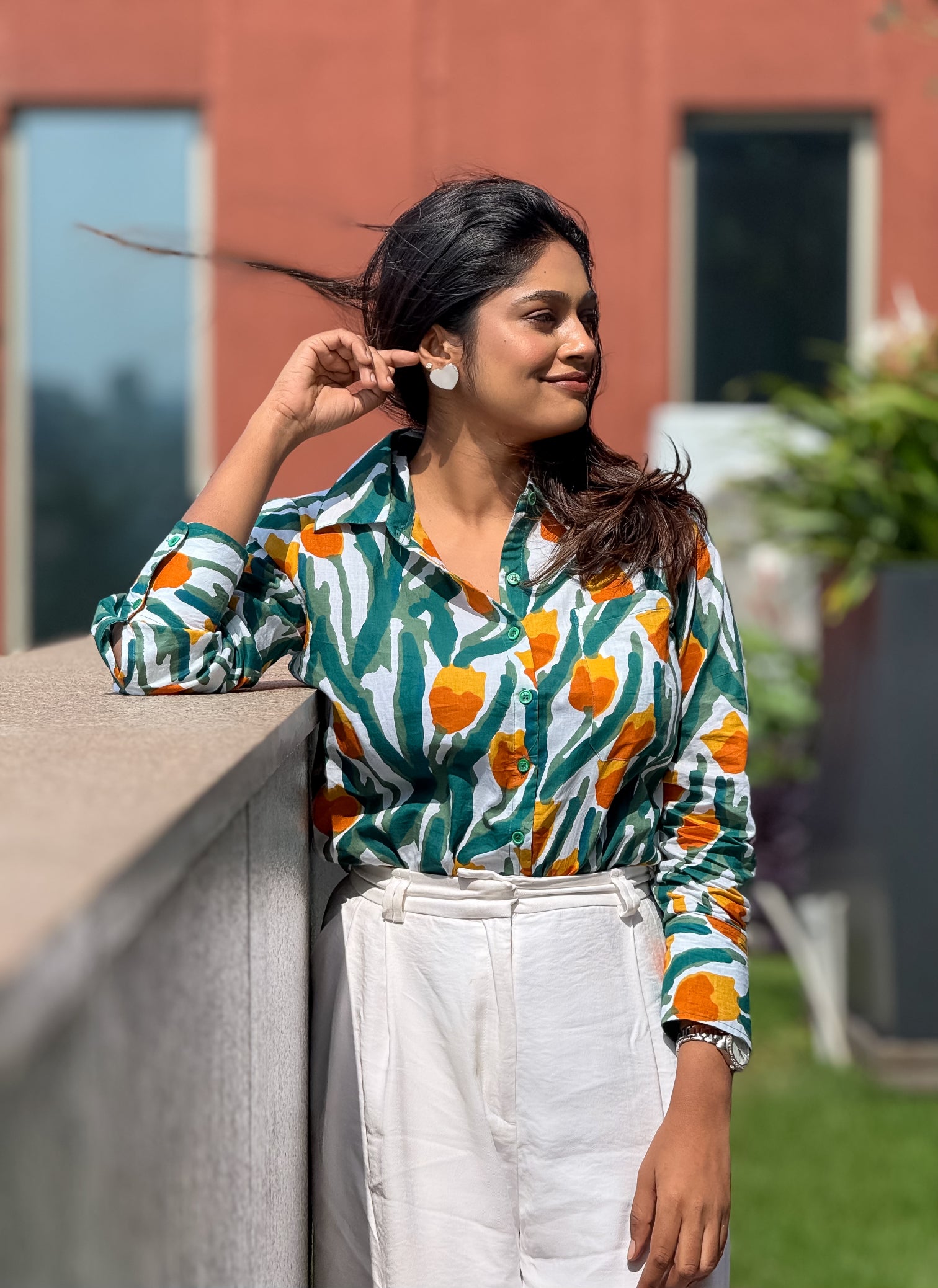 Women's shirt 8 -multi colour floral printed organic cotton shirt