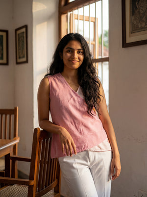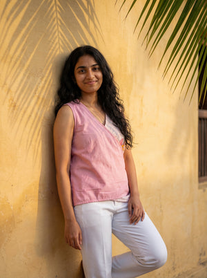 Crop top #46- handloom organic cotton top in pink & white