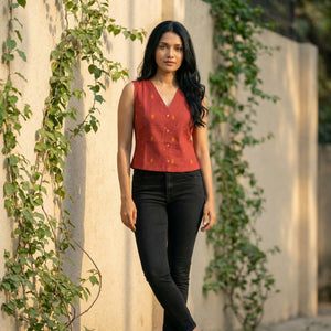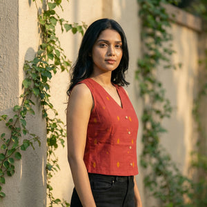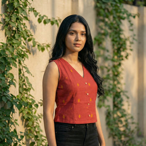 Crop top #90- handloom organic cotton top in deep red