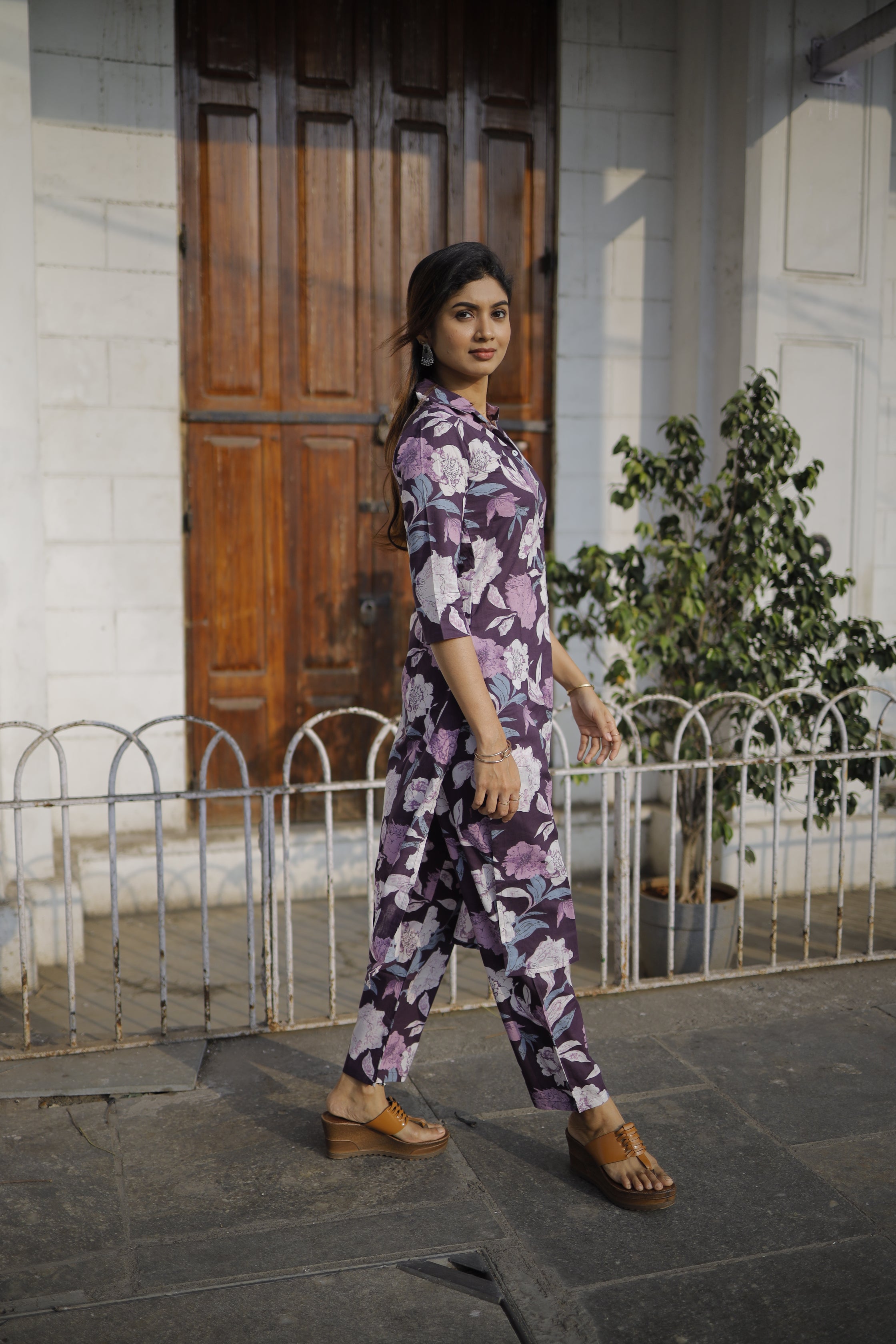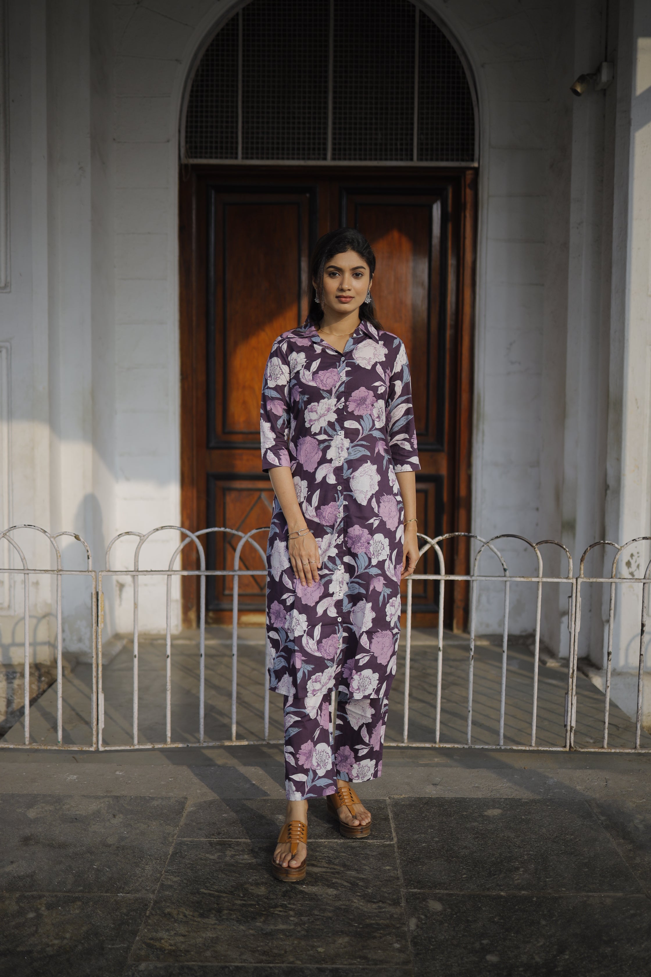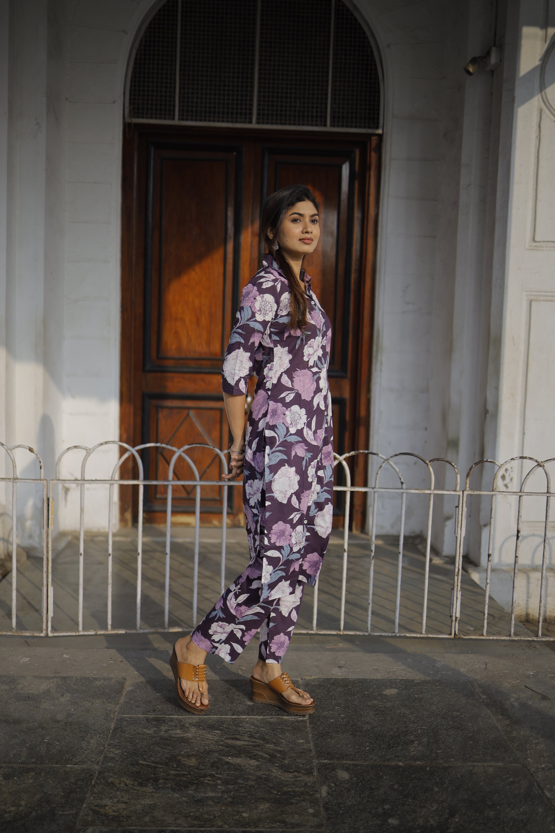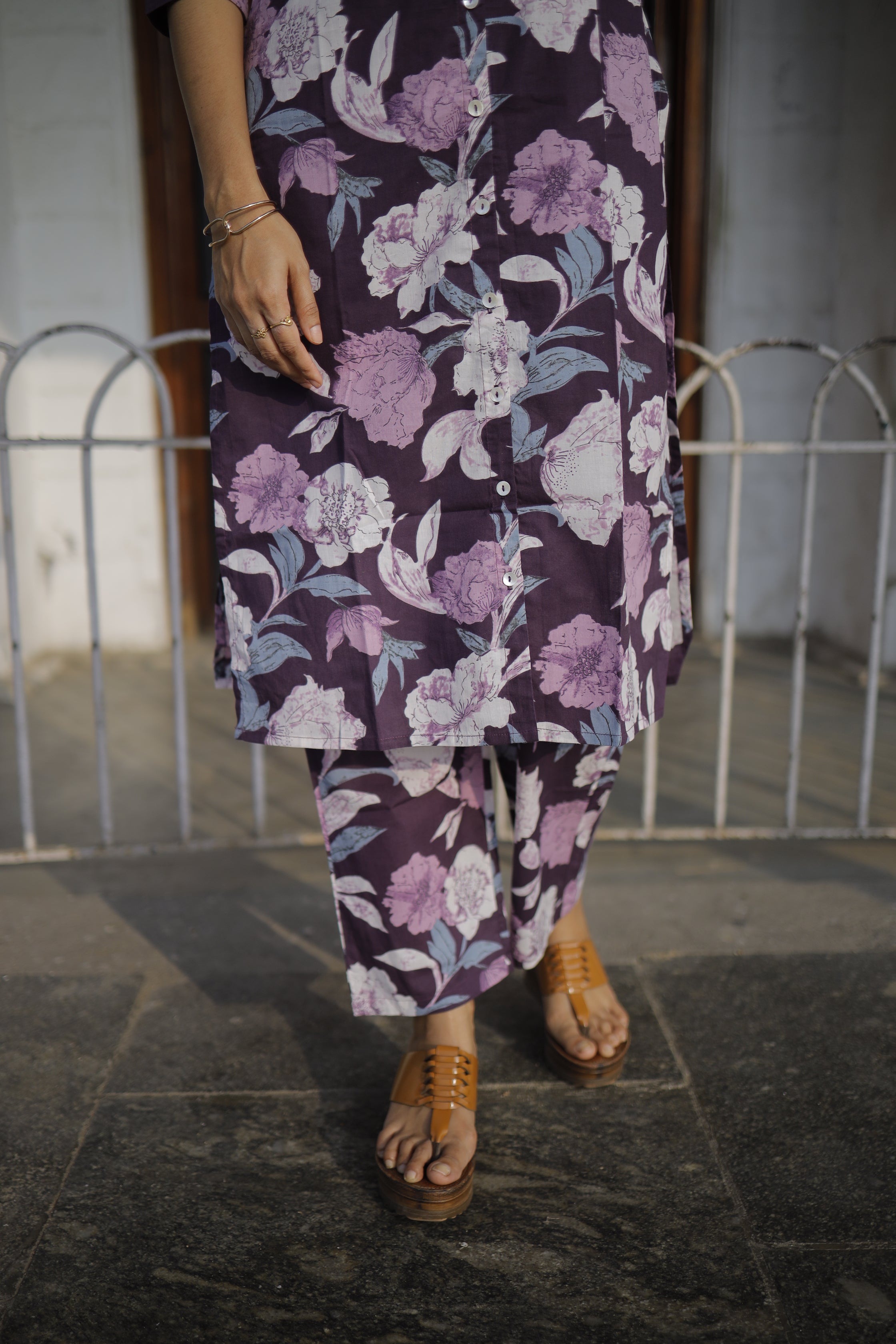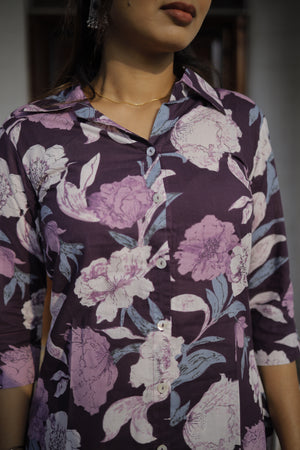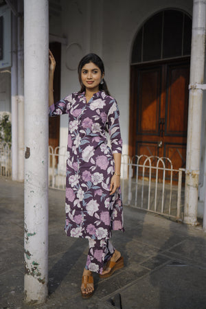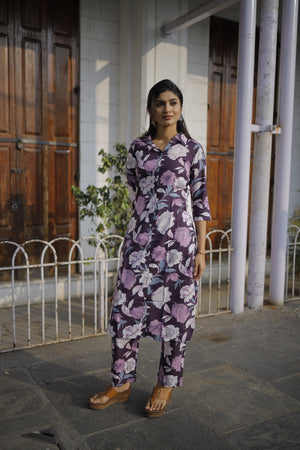 Dieksha - purple floral organic cotton kurta set
