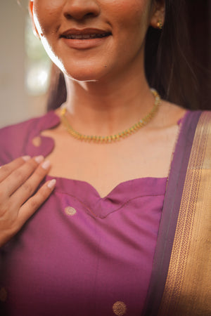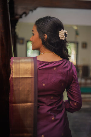 Ilavarasi (wine) - gold zari vegan silk suit set in wine