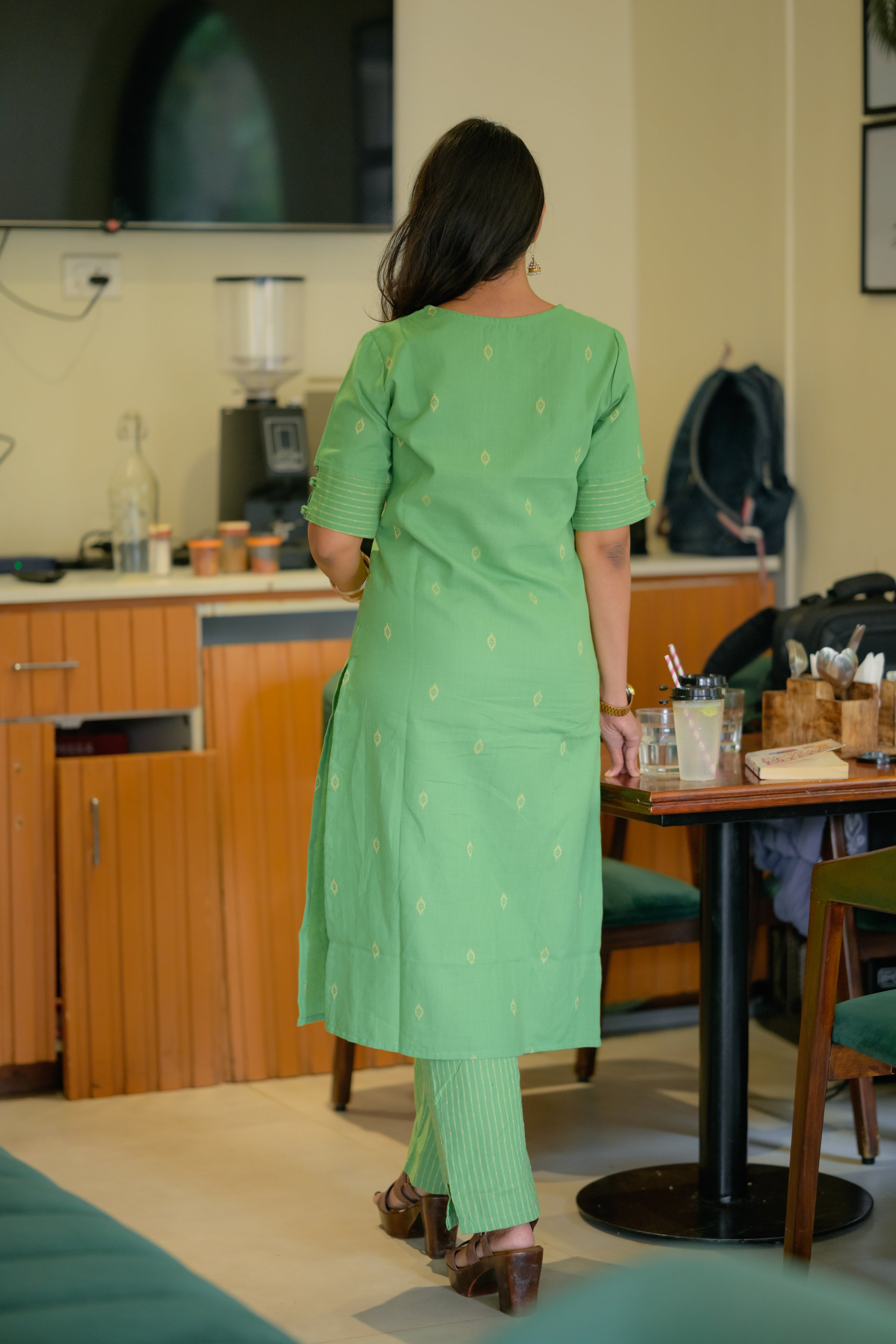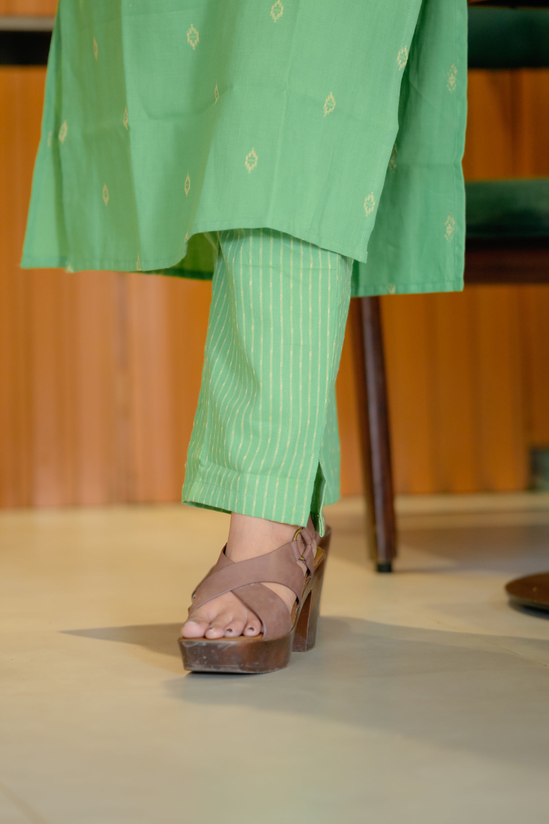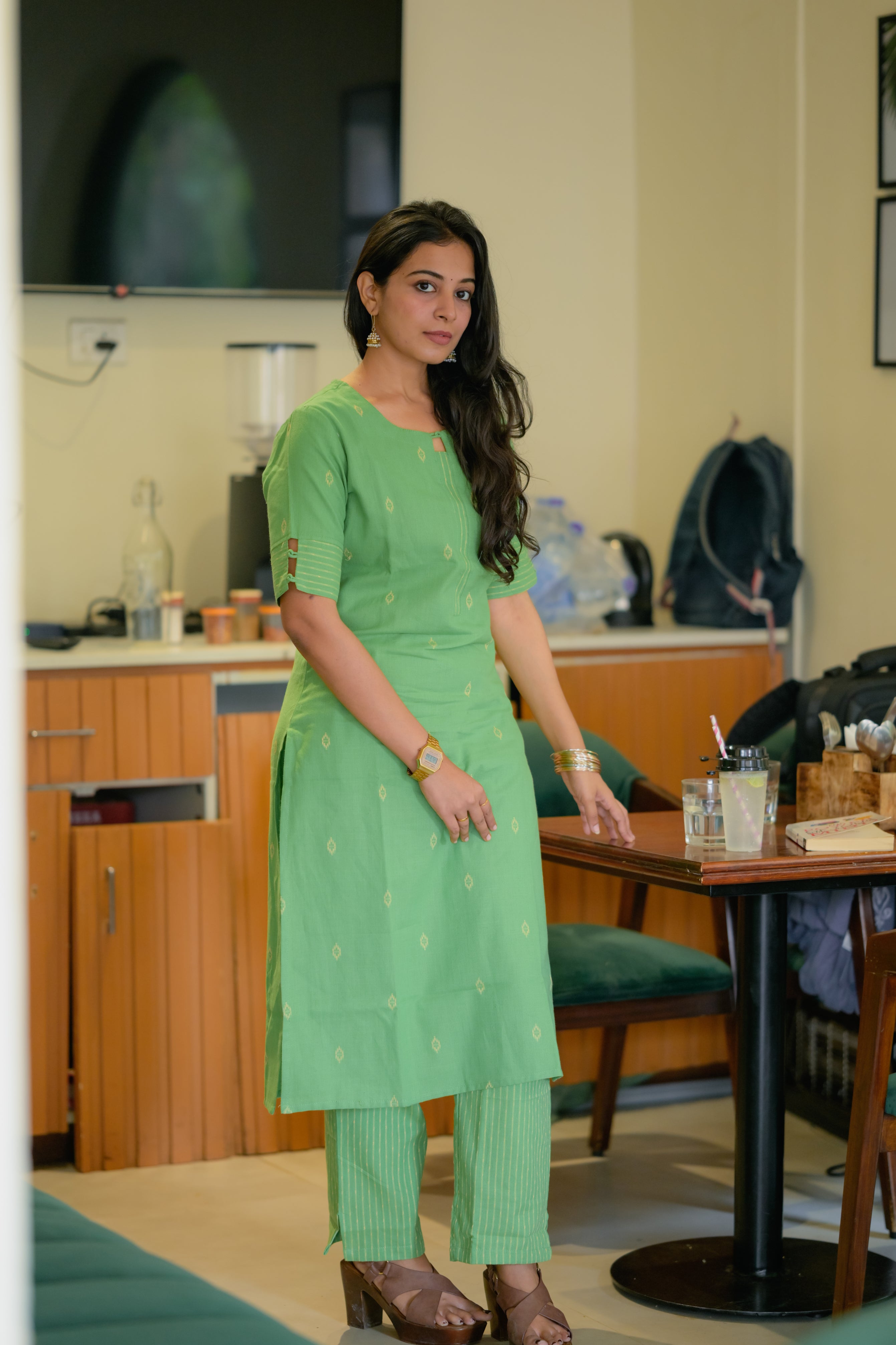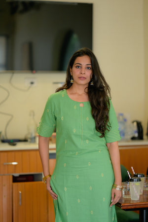 Ina (green) - handloom linen cotton kurta set in green