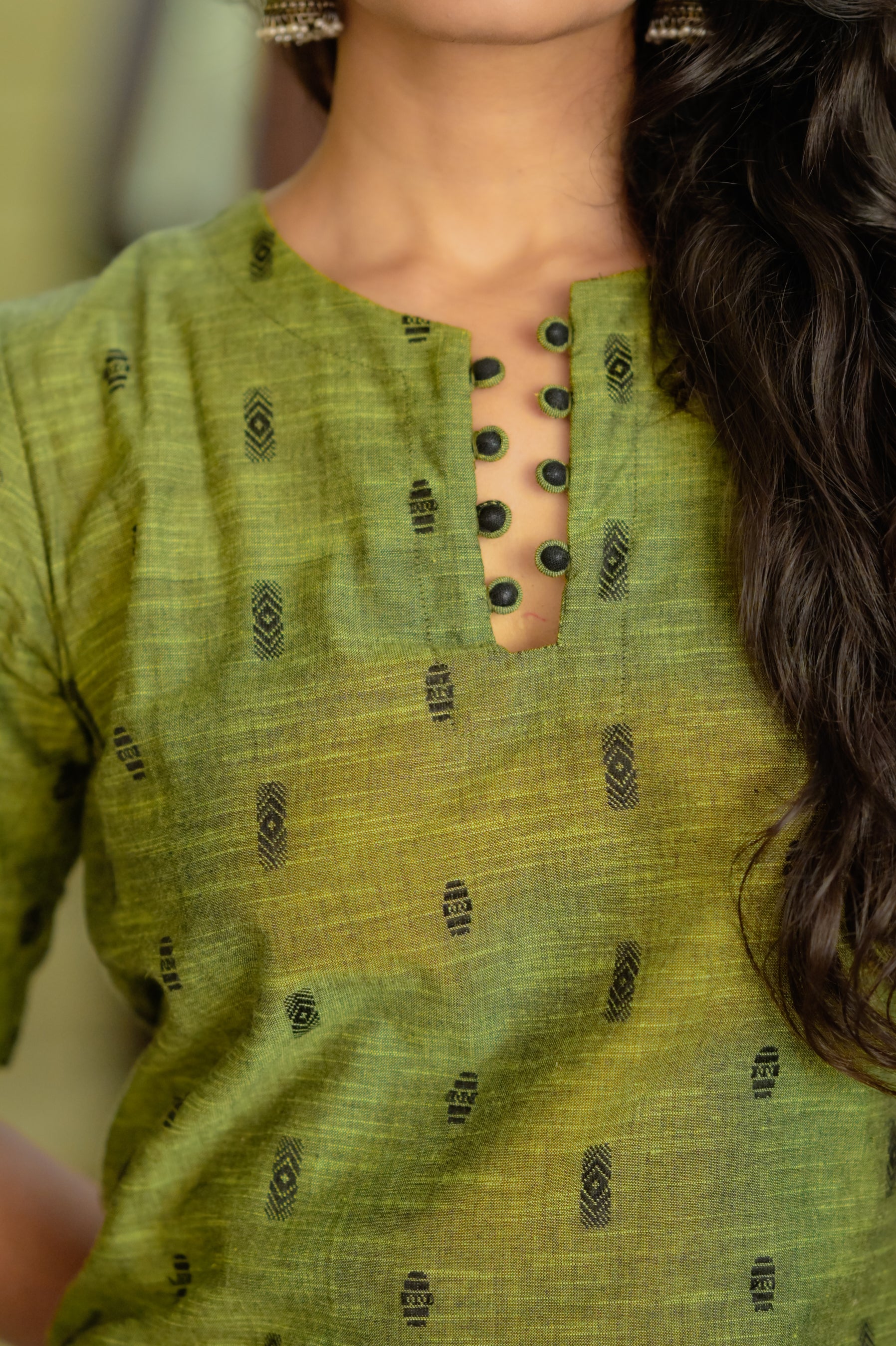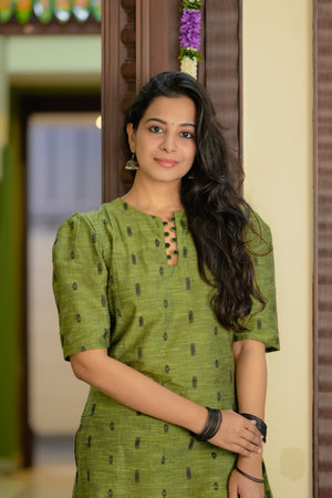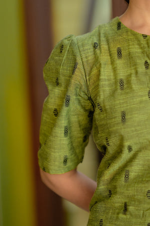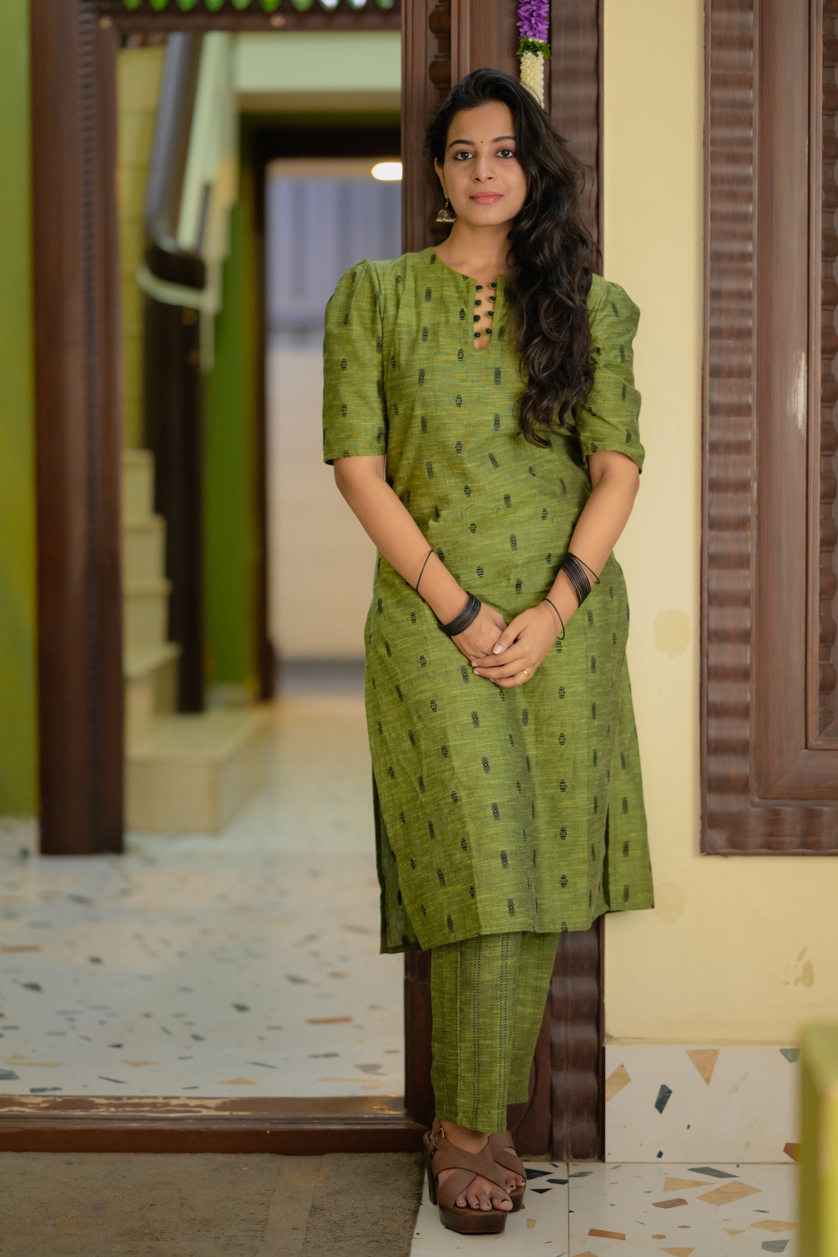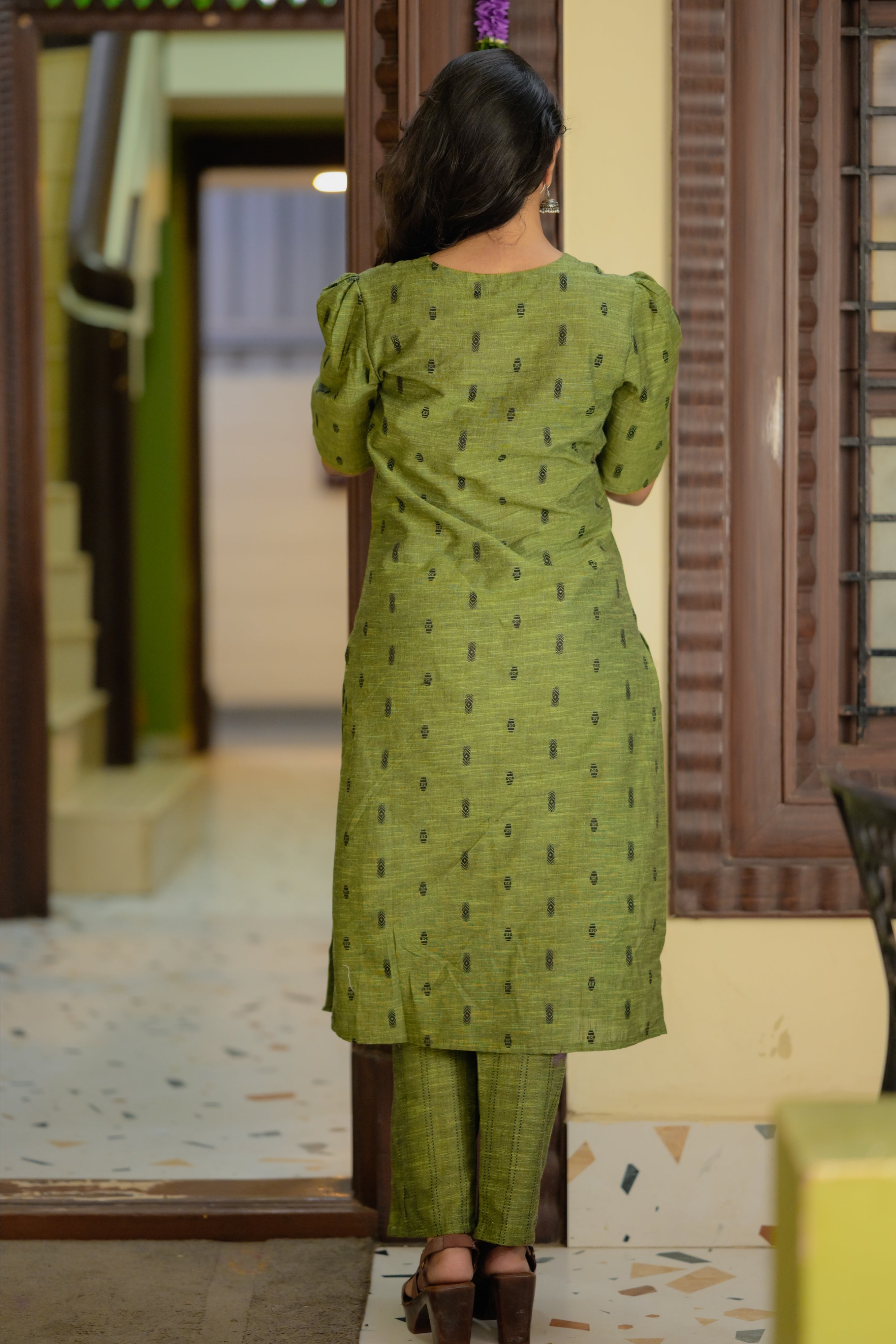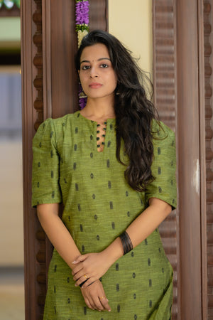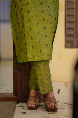 Ina (mehendi green) - handloom cotton linen kurta set in mehendi green