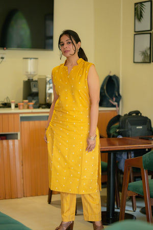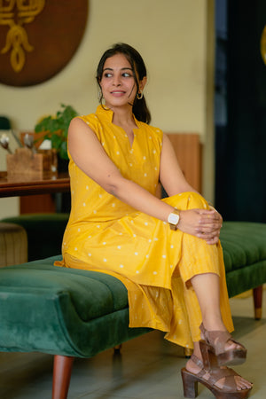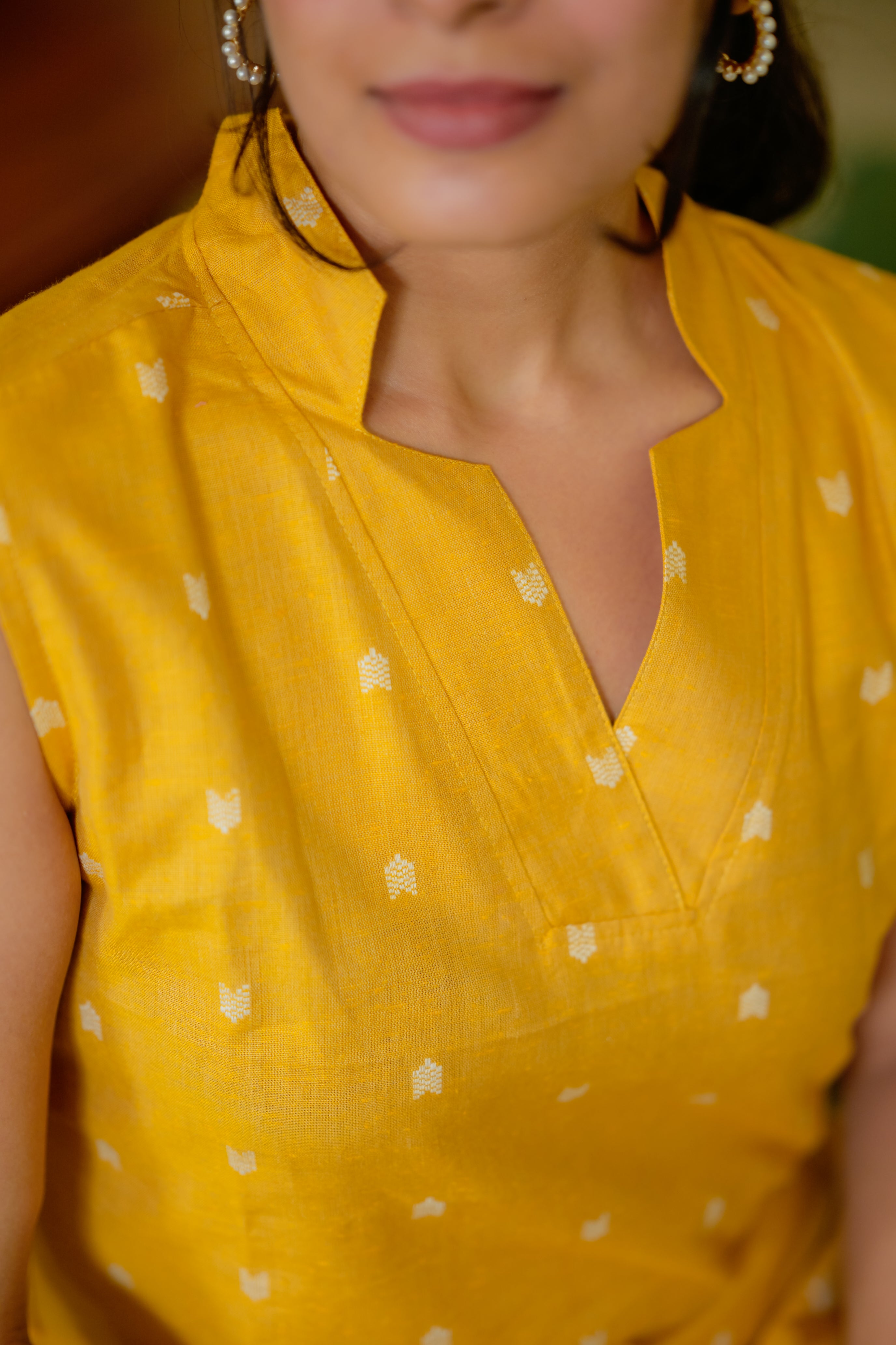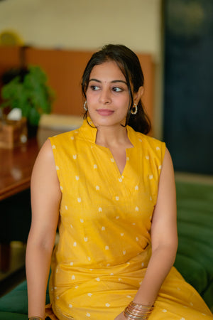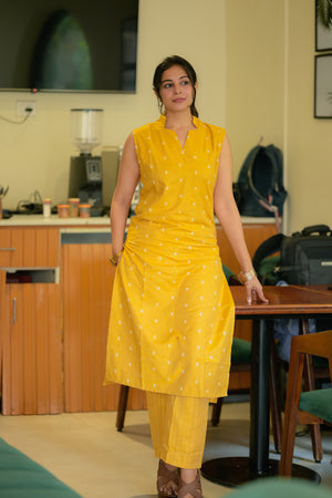 Ina (yellow) - handloom linen cotton kurta set in yellow