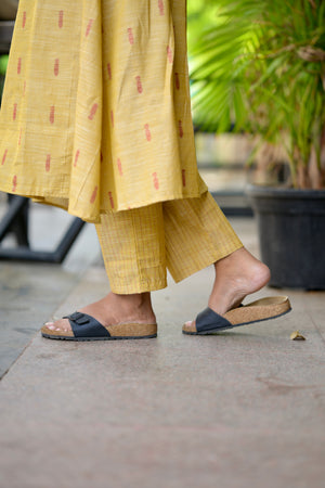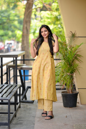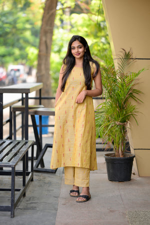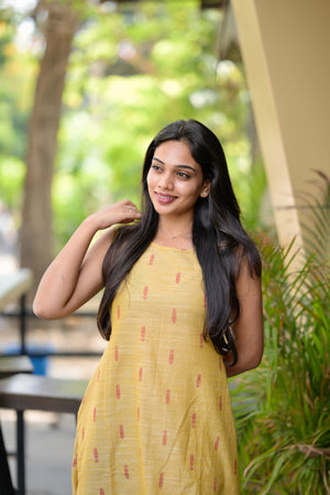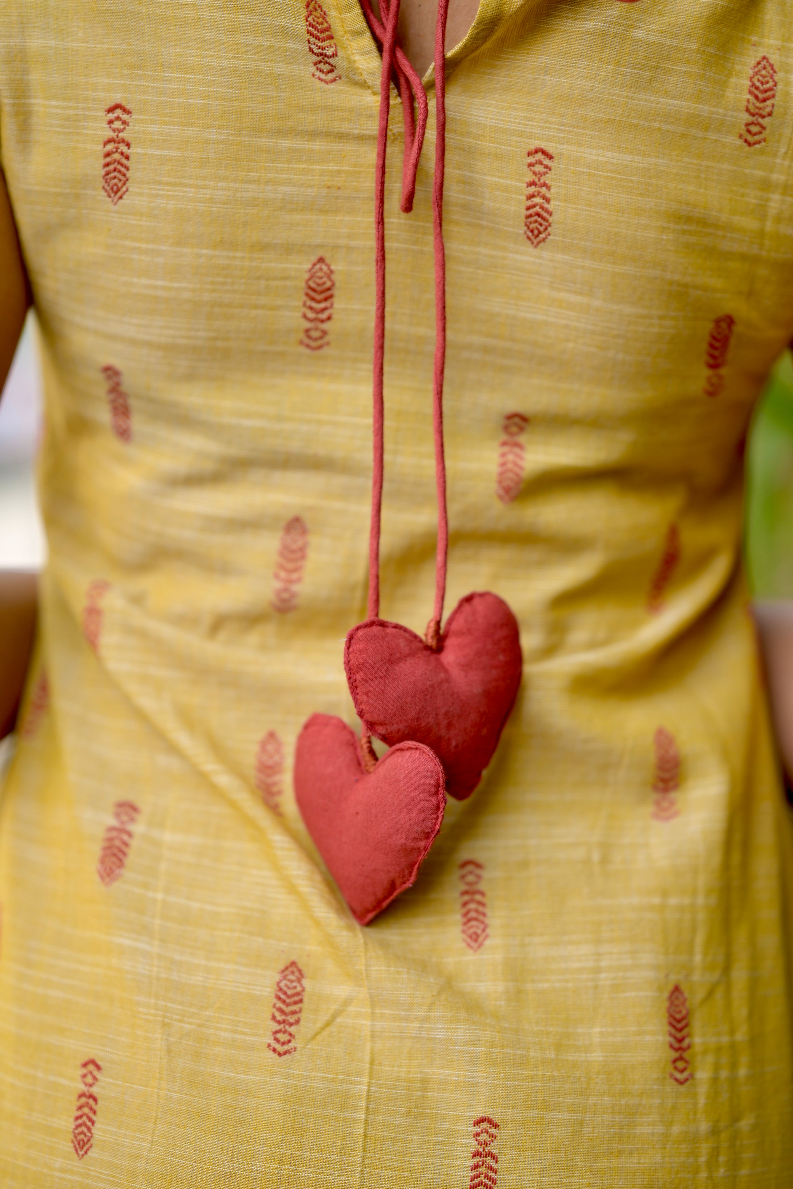 Inaya - yellow handloom linen kurta set with red heart tassels
