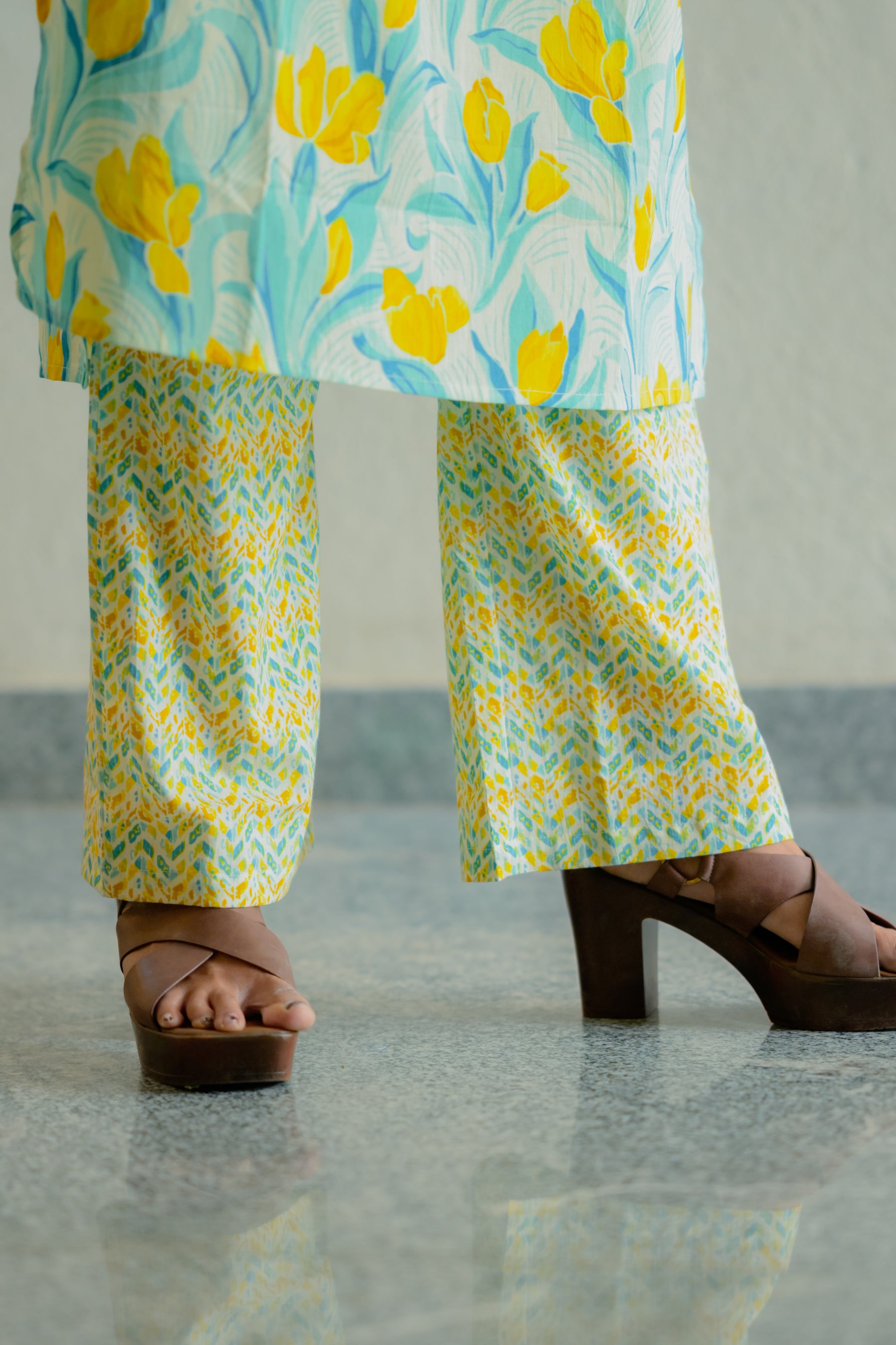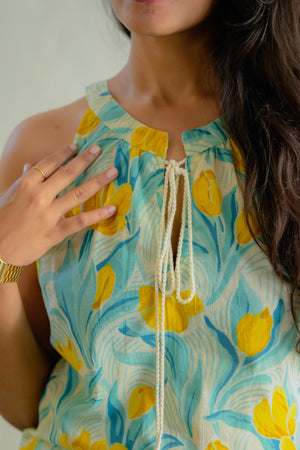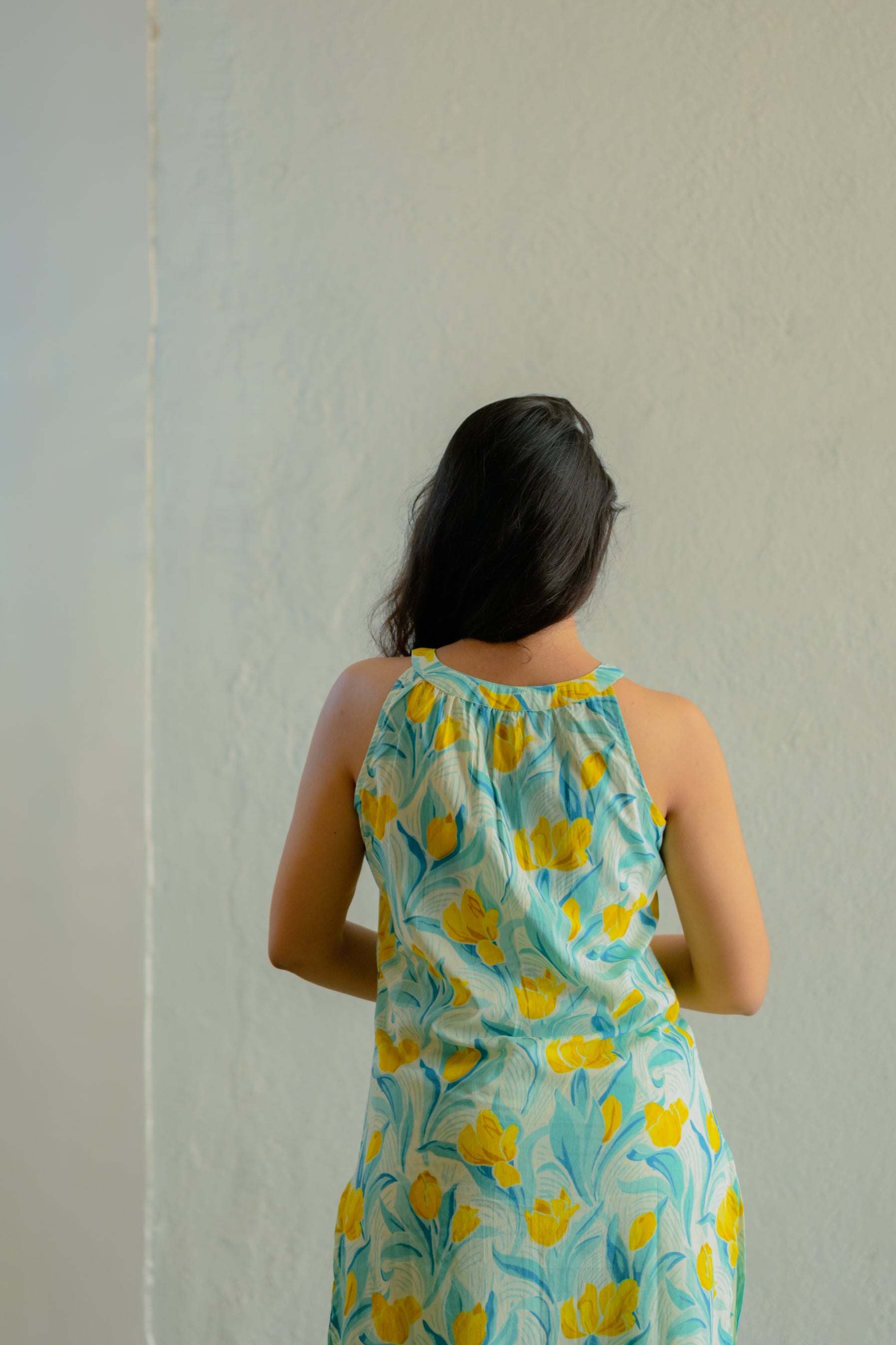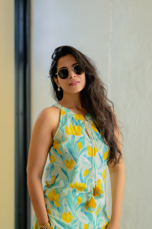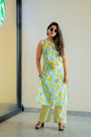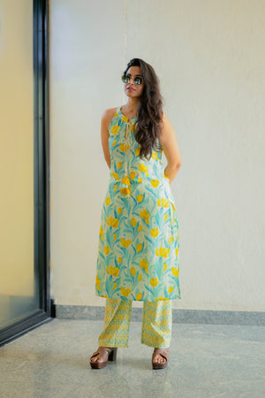 Jia - multi colour floral halter neck floral organic cotton kurta set