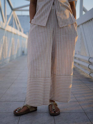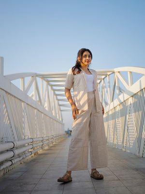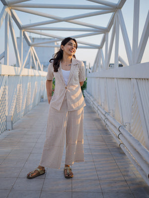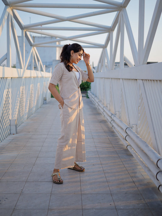 Blazer coord set made of pure handloom cotton, wooden button closure. Trousers have functional pockets too.