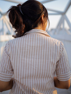 Junaita - handloom linen cotton semi formal coord set in cream