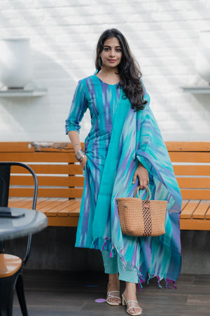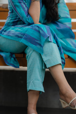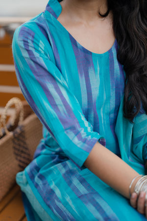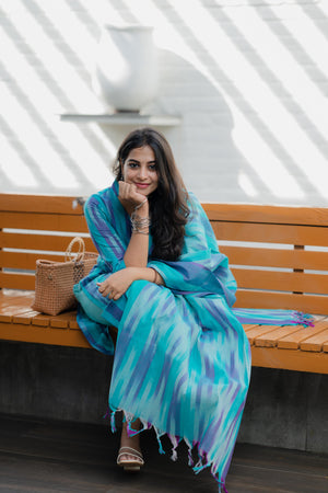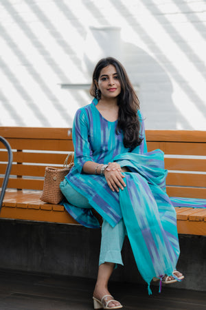 Kalki ( blue ) - ikat handloom cotton suit set with dupatta in blue
