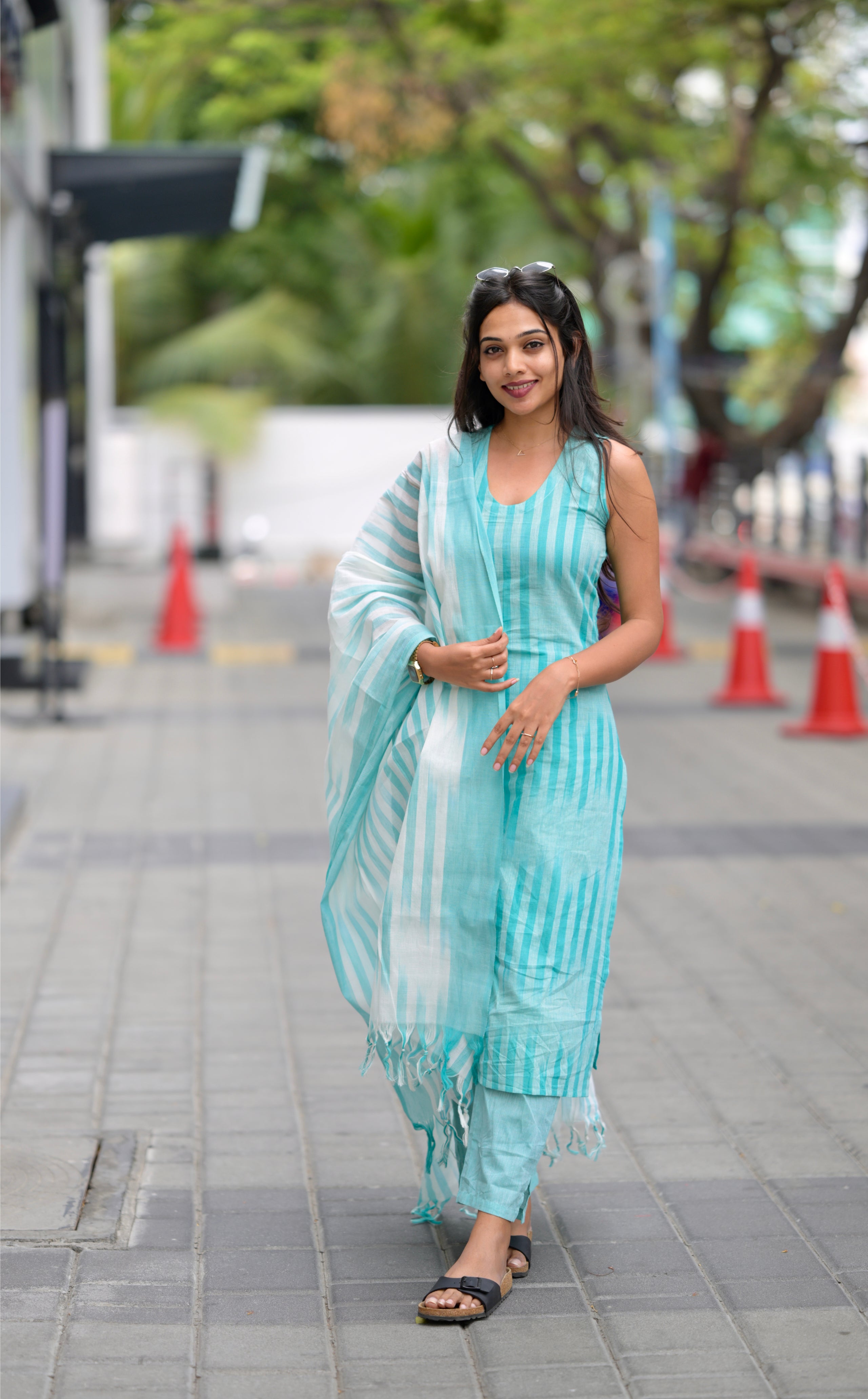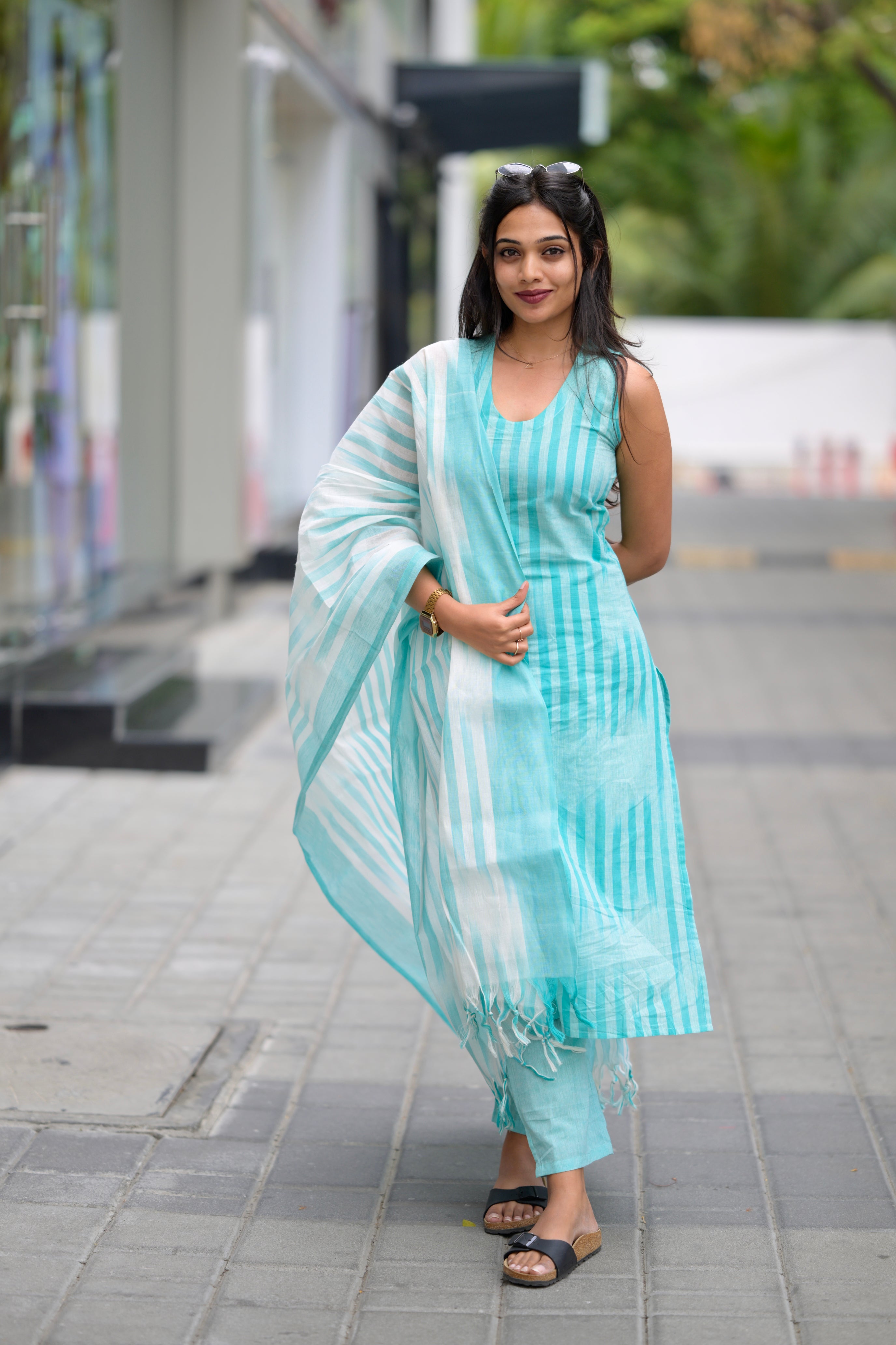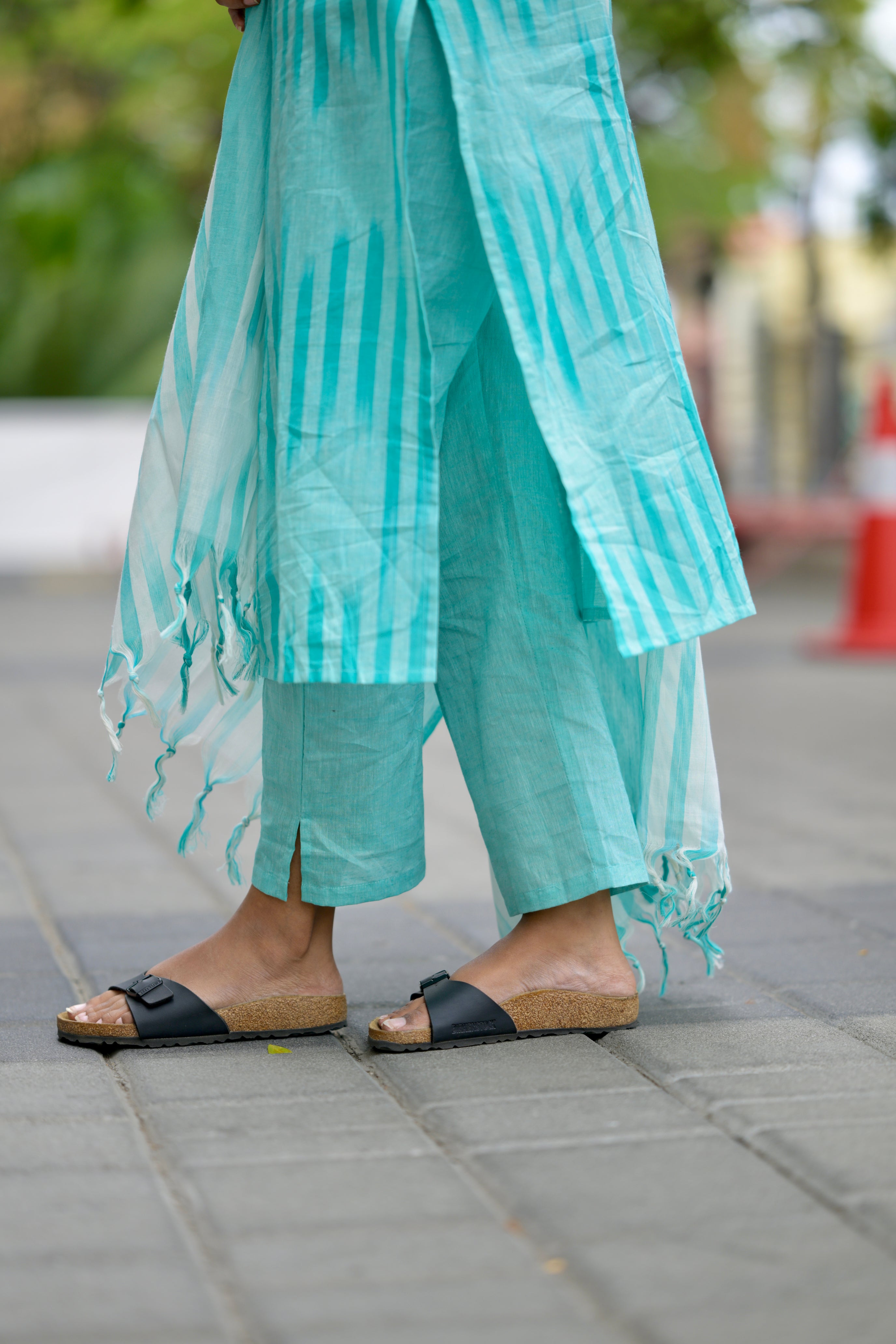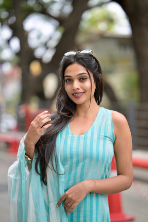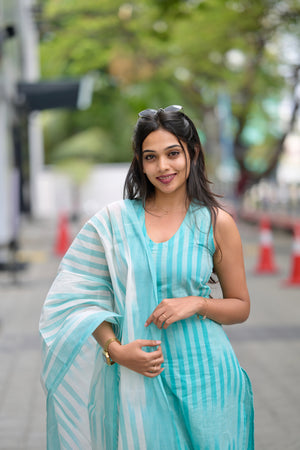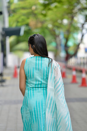 Kalki (sea blue) -ikkat handloom cotton suit set with dupatta in sea blue