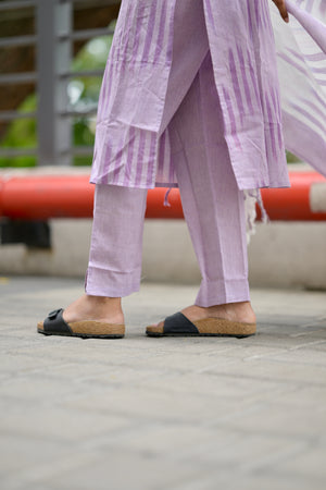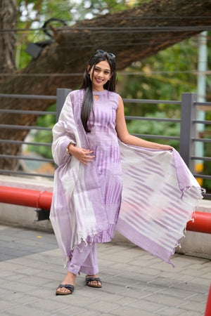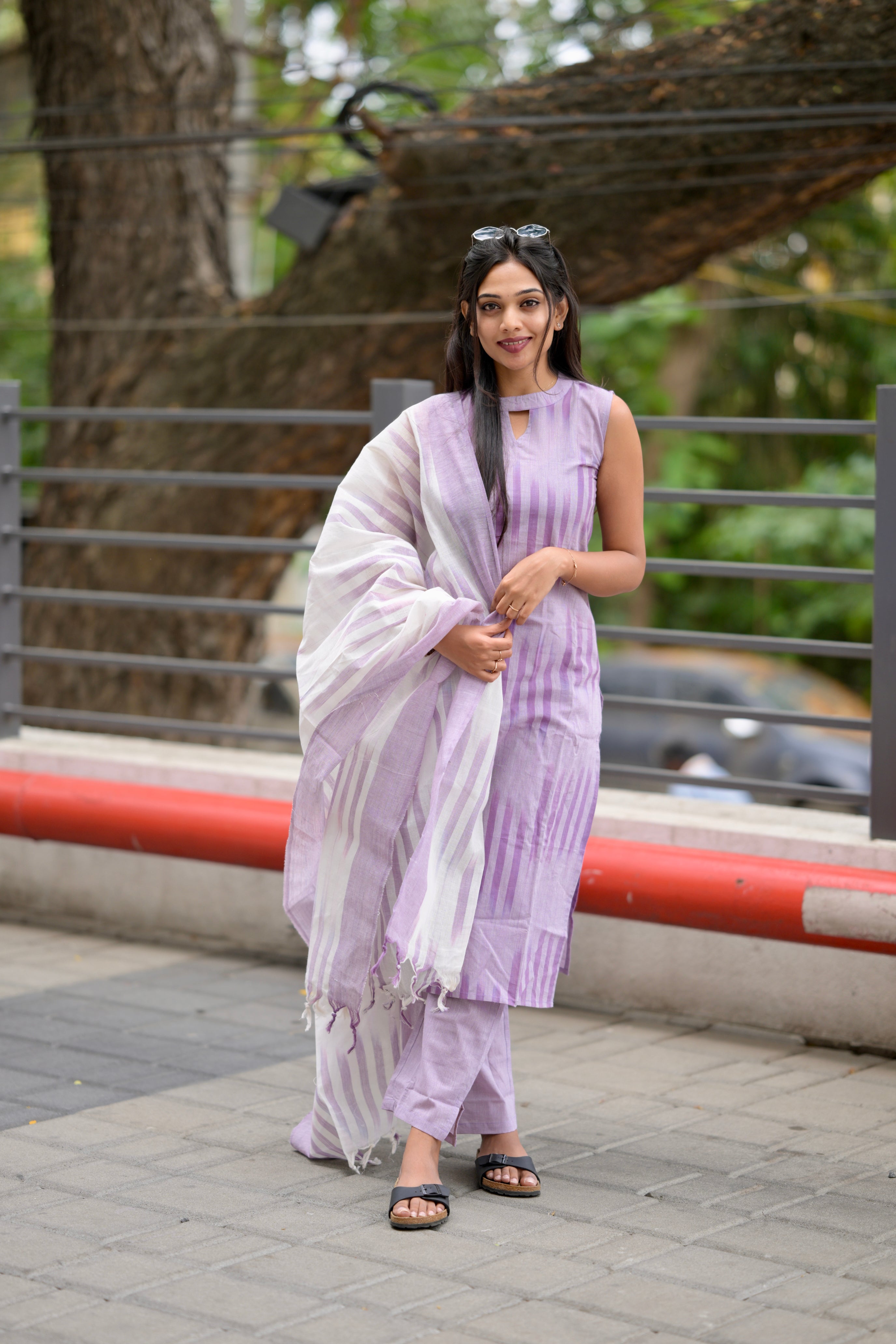 Kalki(lavender) - ikkat handloom cotton suit set with dupatta in lavender