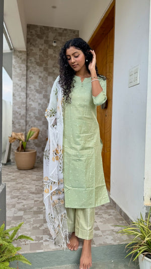 Kavisha - linen cotton flex kurta with mughal handblock printed kota doria dupatta in green