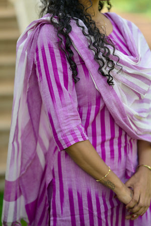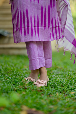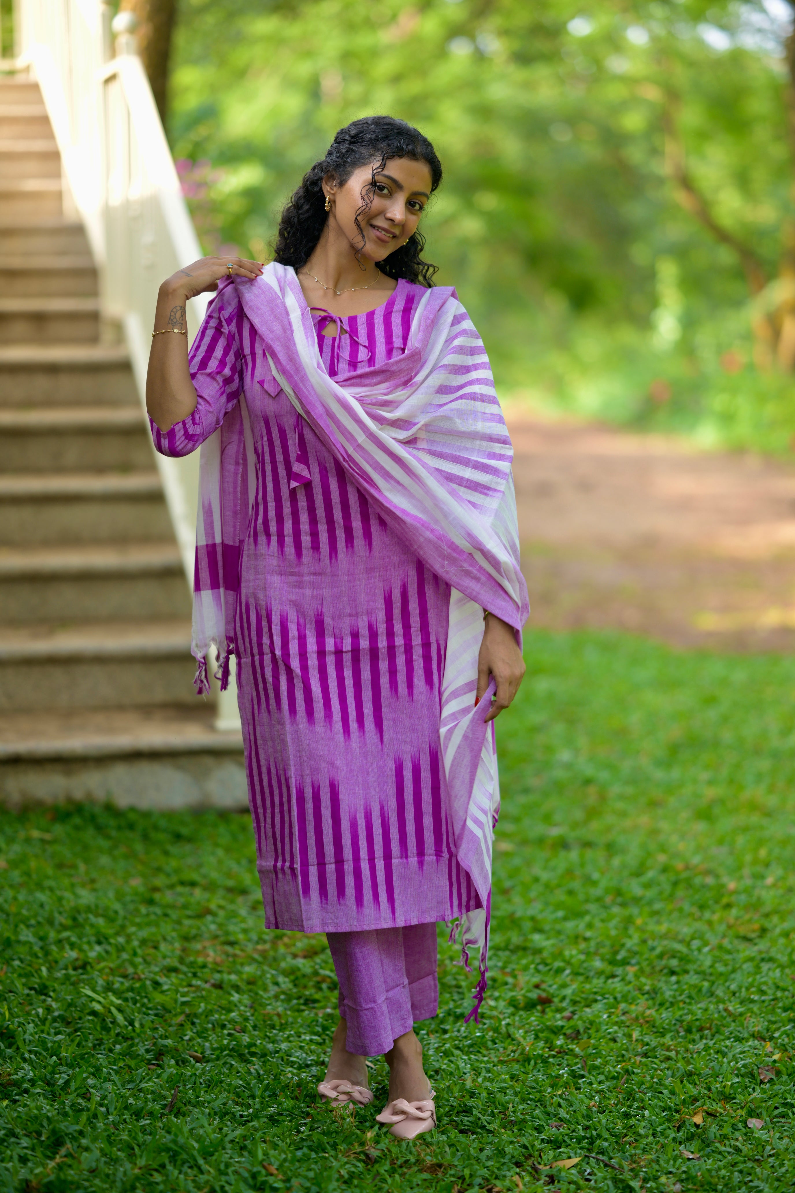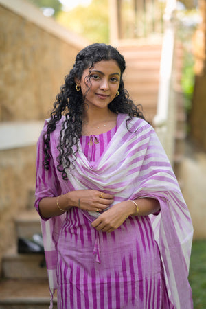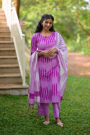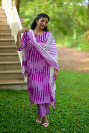 Kayal( purple ) - ikkat handloom cotton suit set with dupatta in purple colour