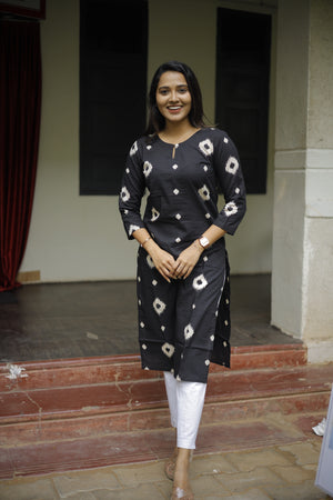 Comfy and super chic cotton聽 kurti in classy and cute prints with smart neck and sleeve pattern. Perfect to pair it with jeans / leggings / trousers. Organic cotton is used making it the most apt for this summer.