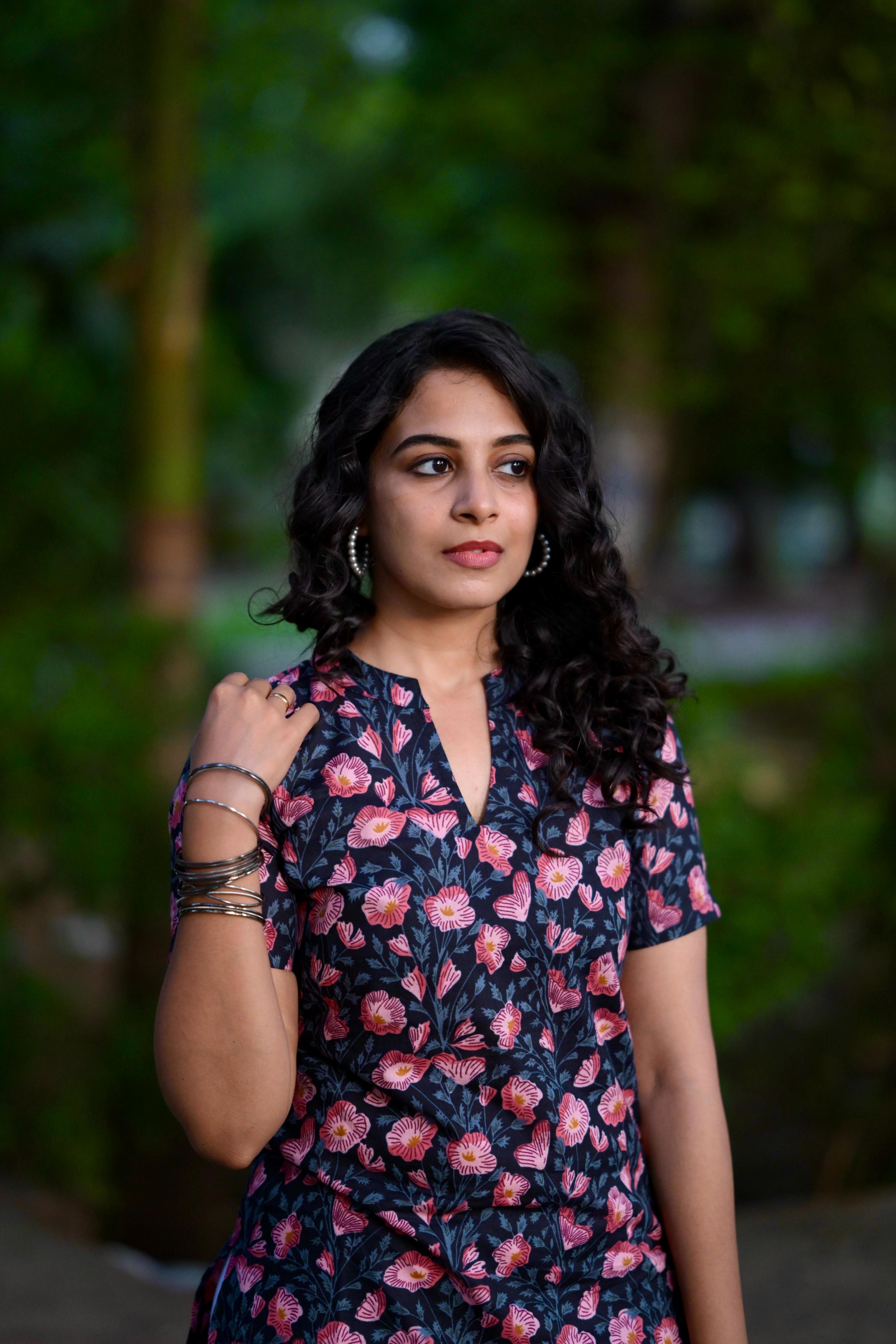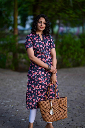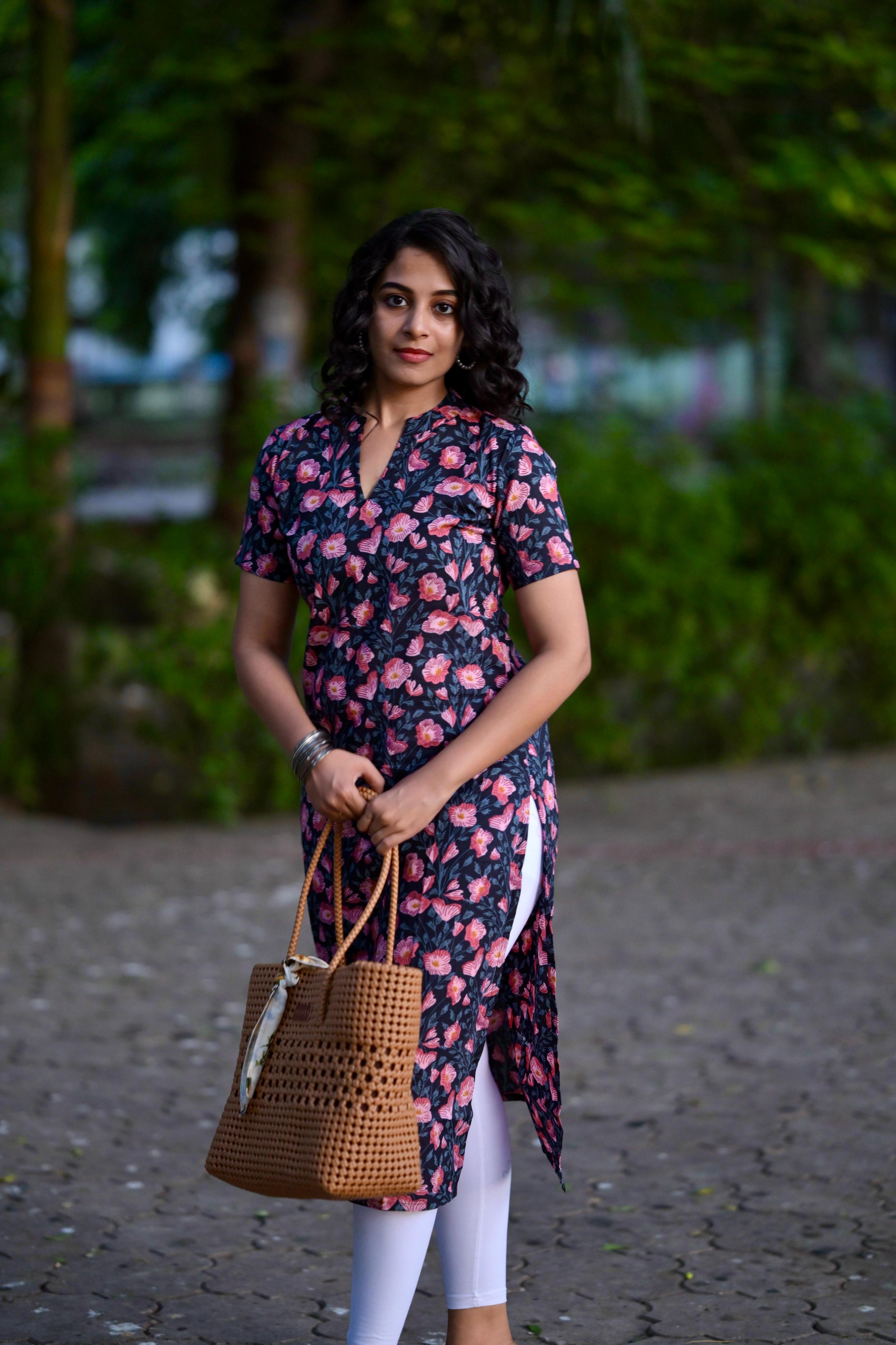— Floral hand block printed organic mul cotton kurta
