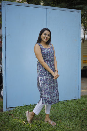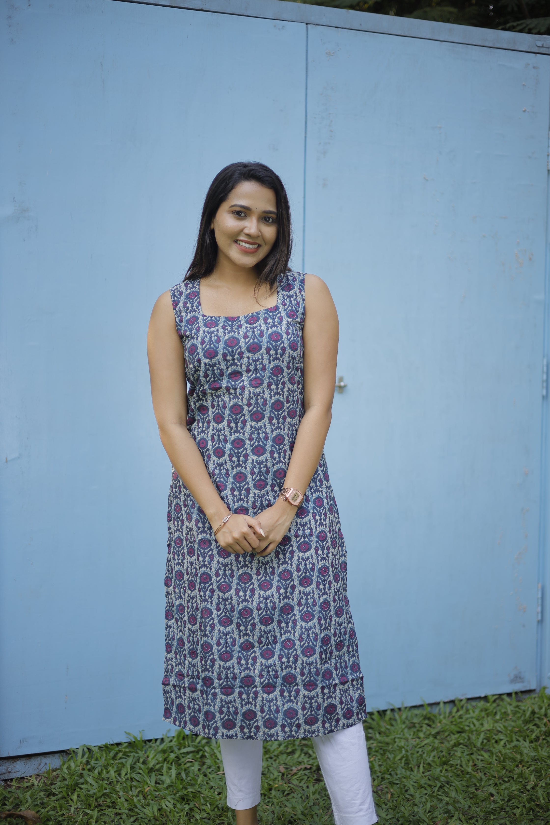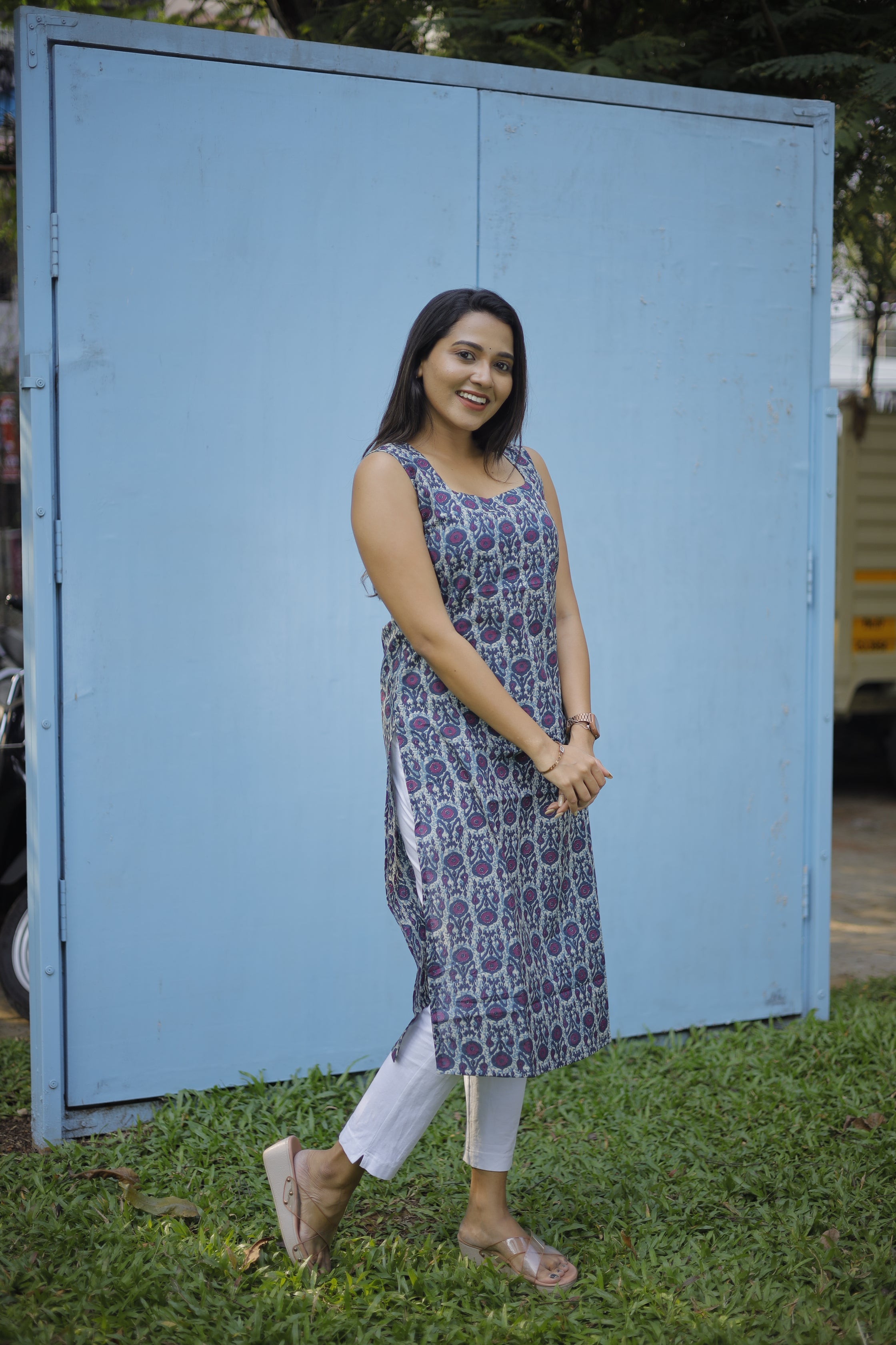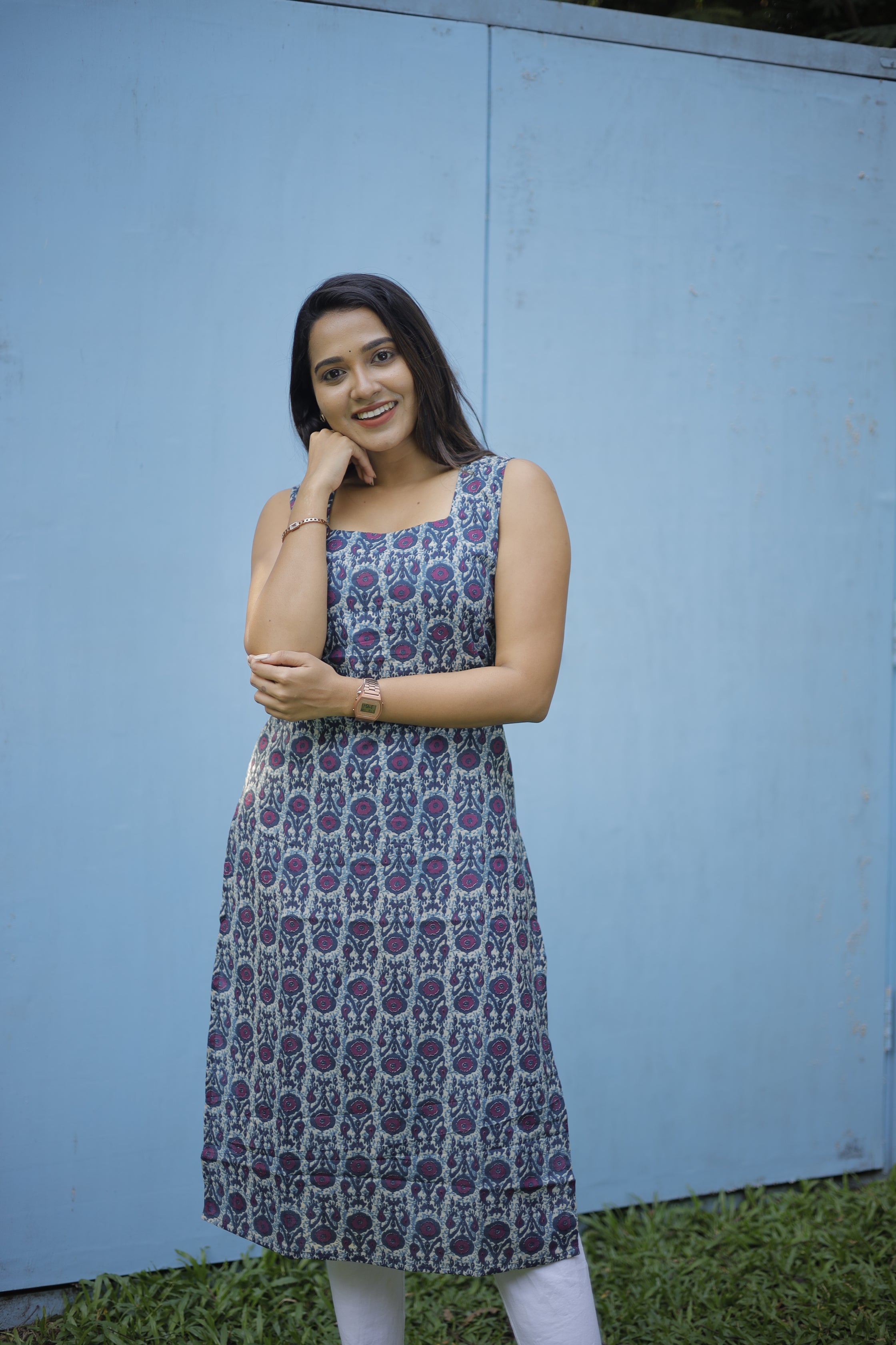 Comfy and super chic cotton kurti in classy and cute prints with smart neck and sleeve pattern. Perfect to pair it with jeans / leggings / trousers. Organic cotton is used making it the most apt for this summer. Attached 11 inch sleeves inside the kurta.