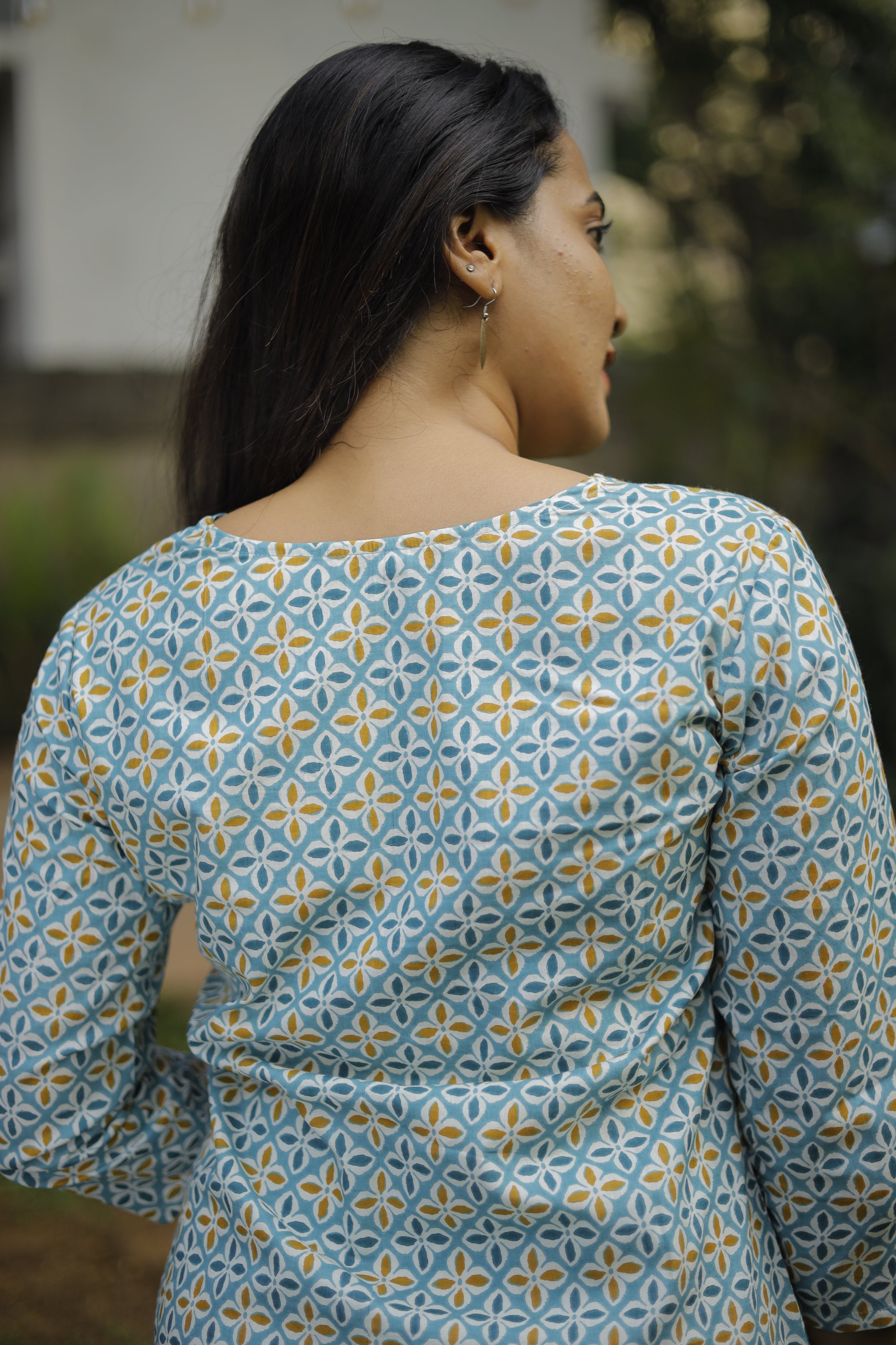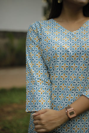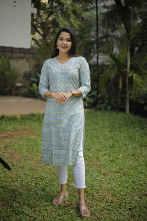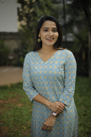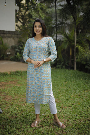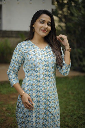 Comfy and super chic cotton kurti in classy and cute prints with smart neck and sleeve pattern. Perfect to pair it with jeans / leggings / trousers. Organic cotton is used making it the most apt for this summer.