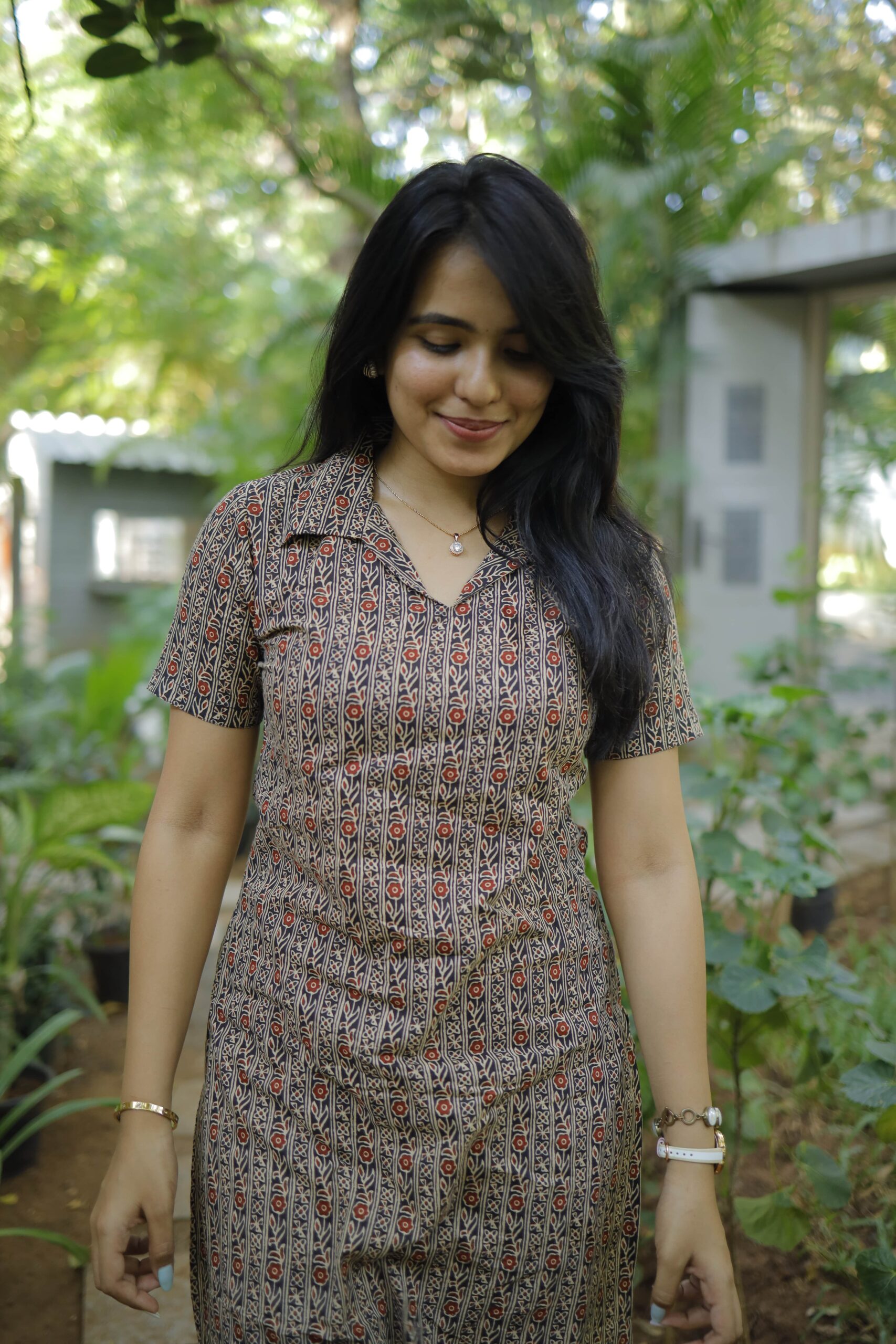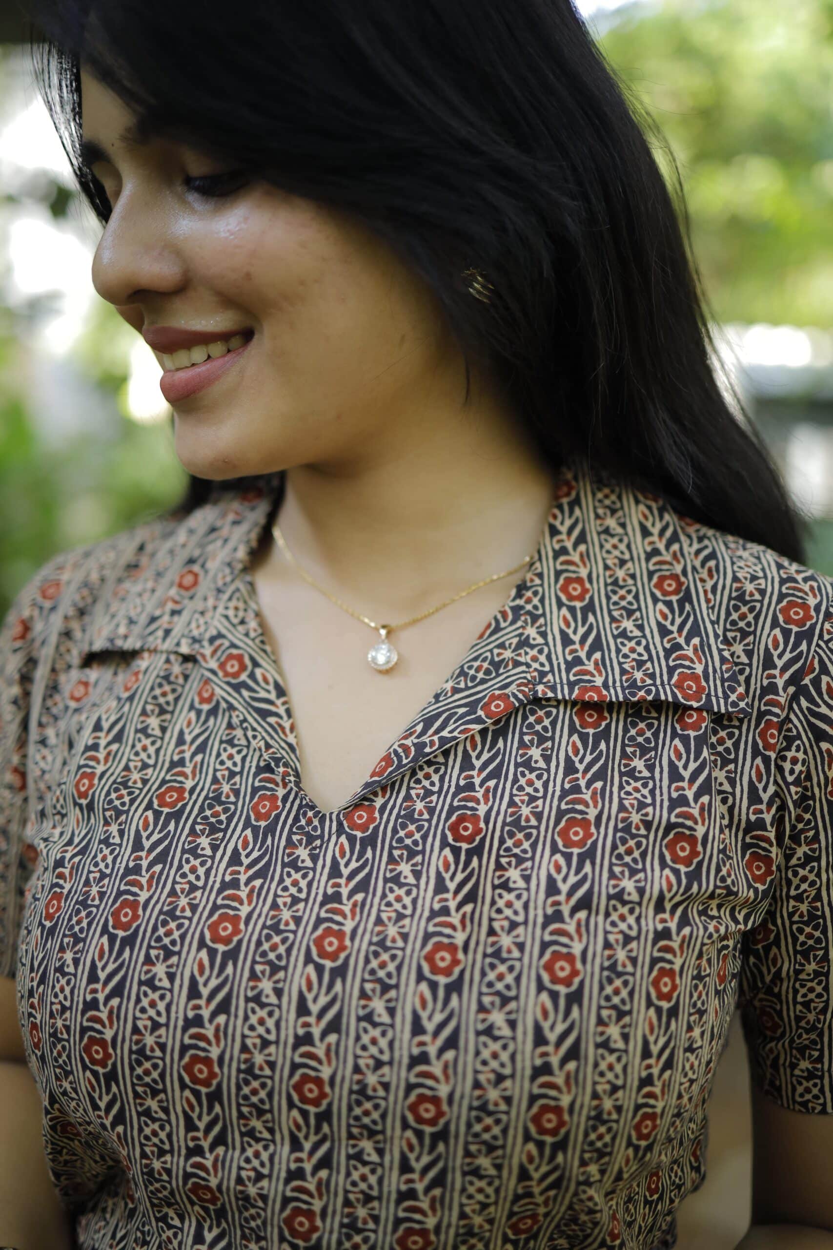 - Floral hand block printed cotton kurta