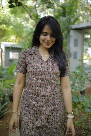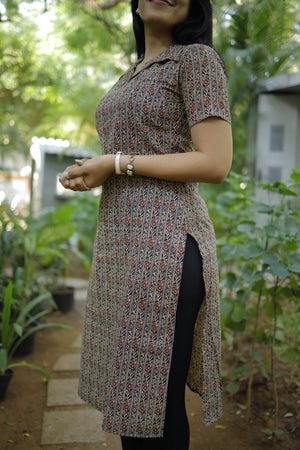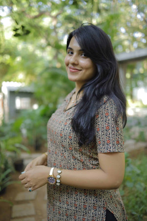 Kurti 61 - floral motifs hand block printed kurti in black
