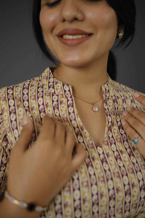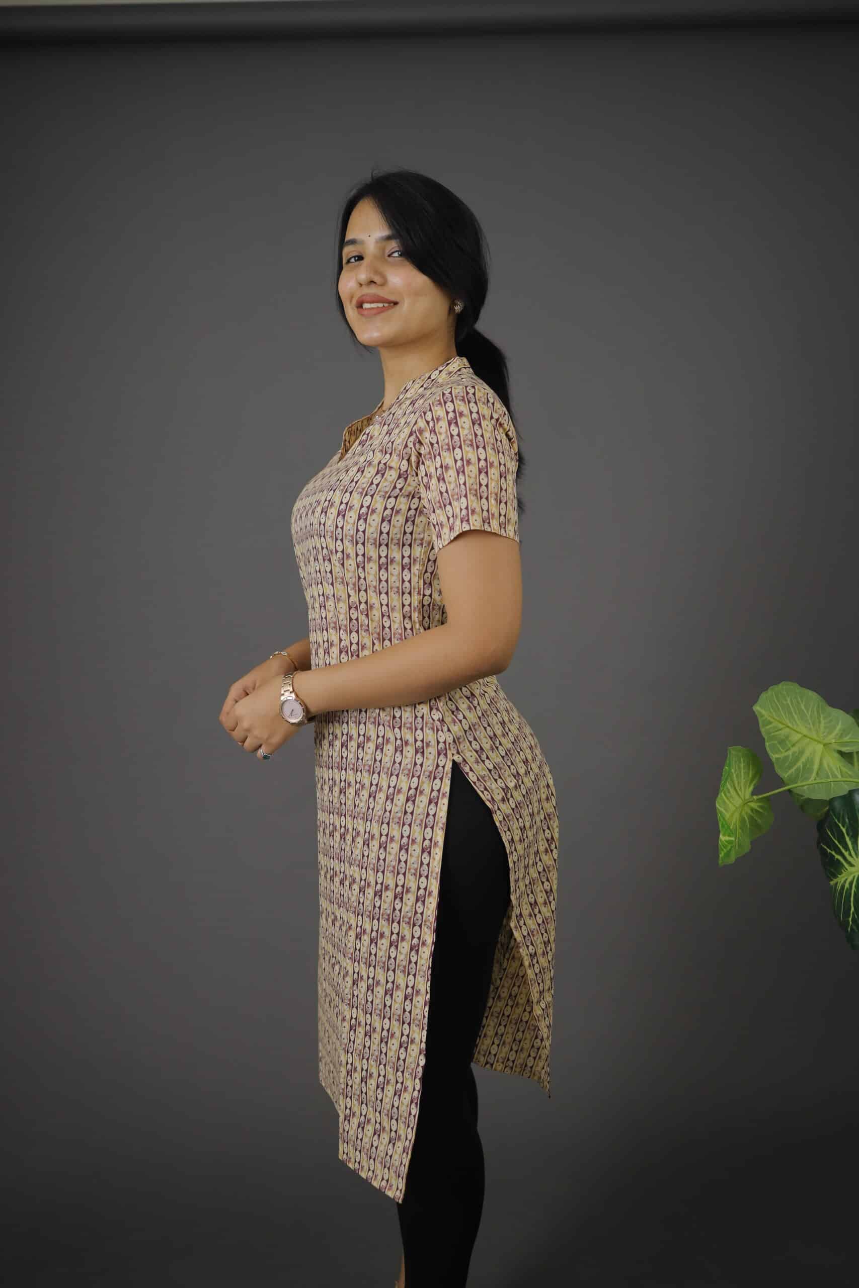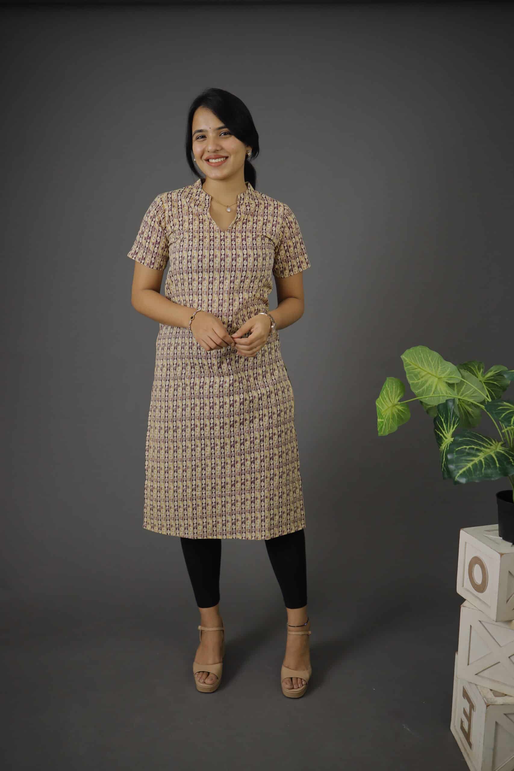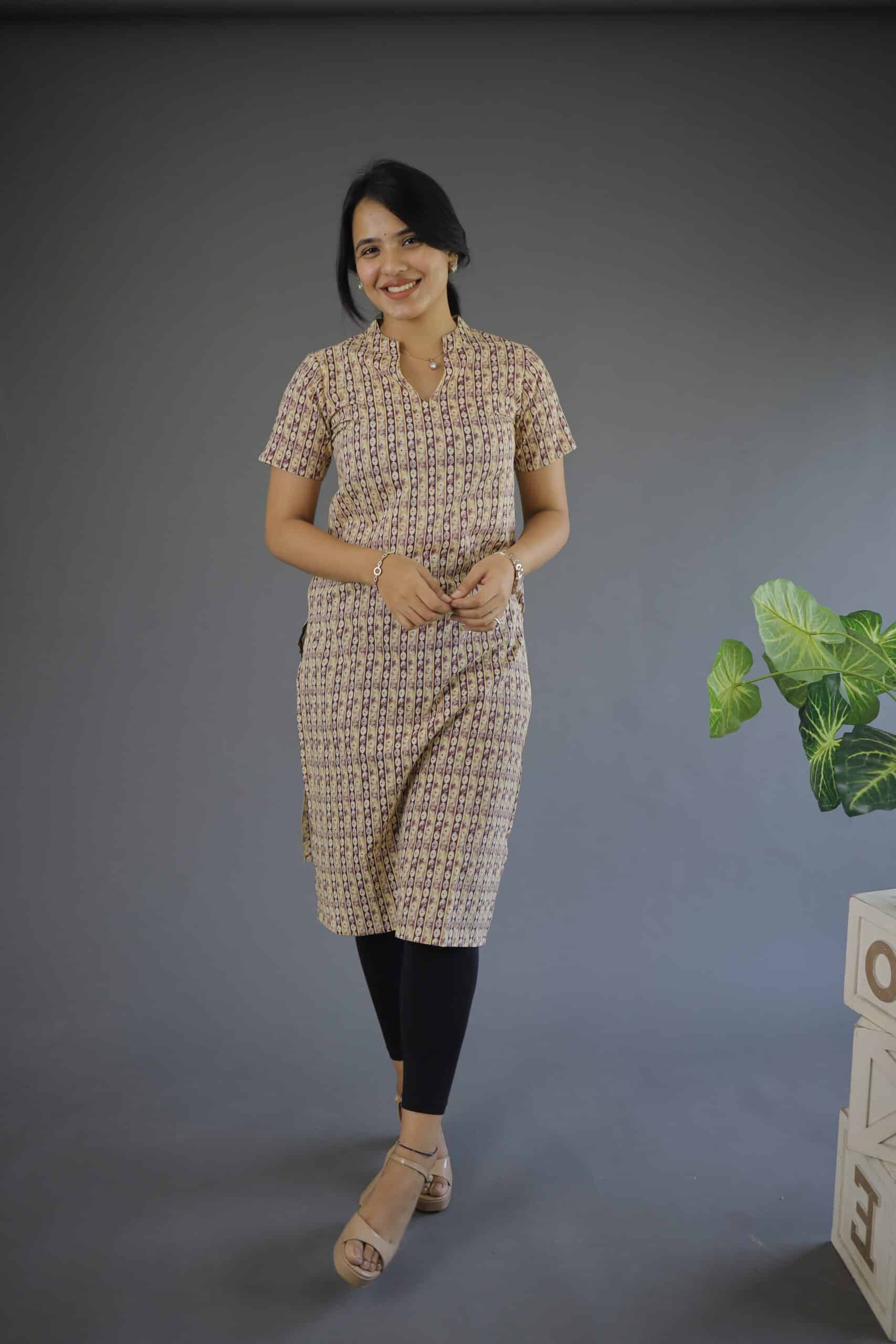 Kurti 70 - abstract hand block printed kurti in Yellow and purple