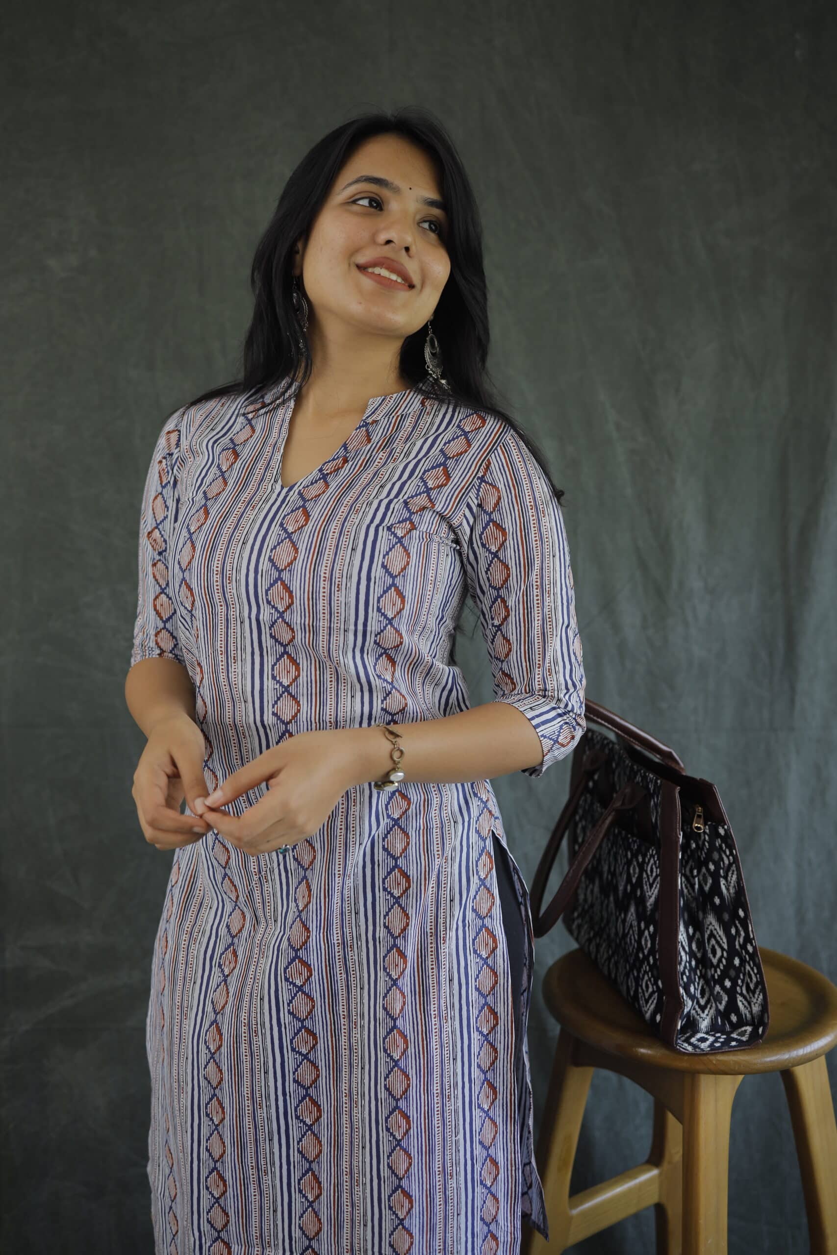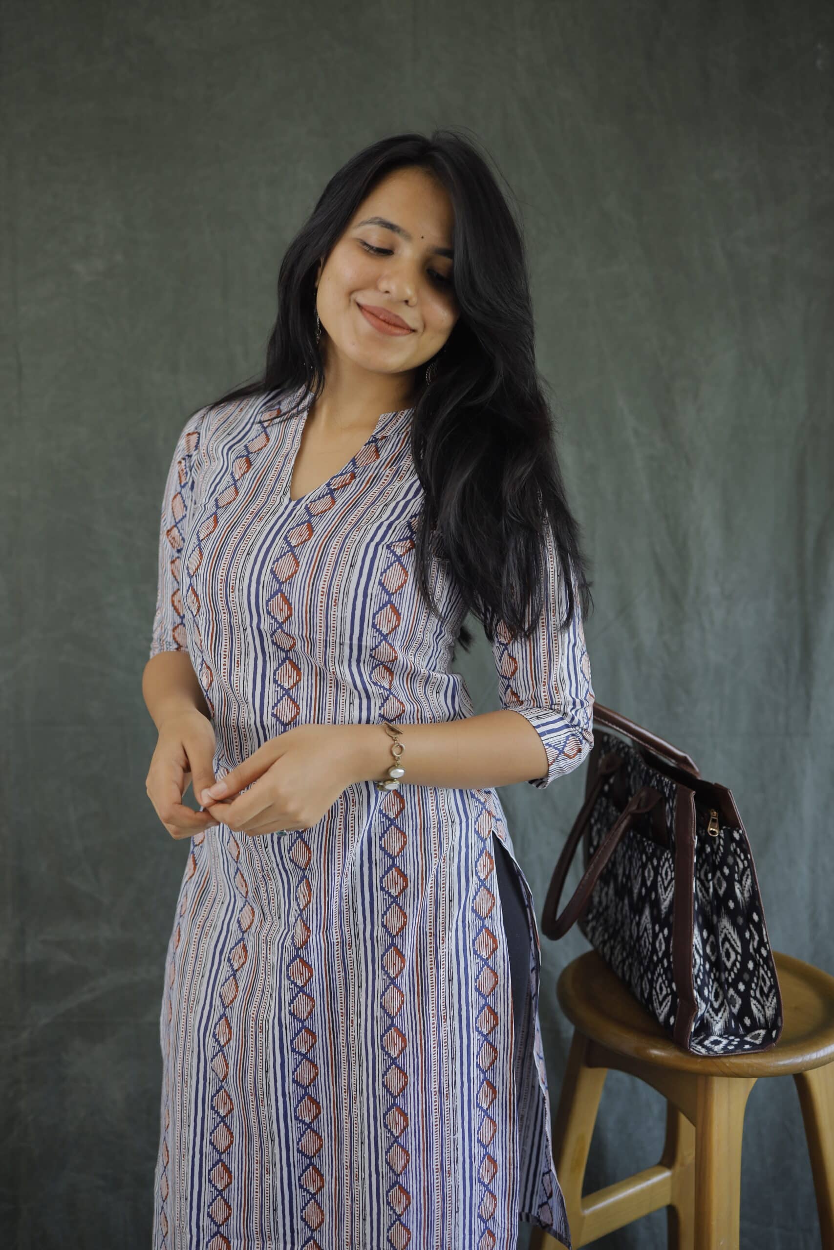 - Smart 3/4th sleeves and smart V neckline with chic collar
