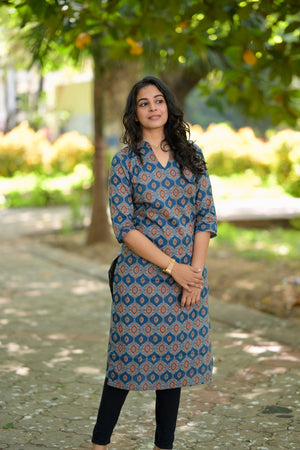 — Smart ajrakh hand block printed organic mul cotton kurta