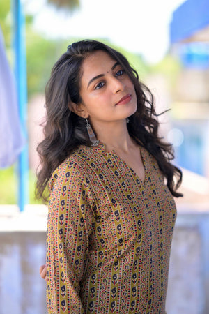 — Smart ajrakh hand block printed organic mul cotton kurta