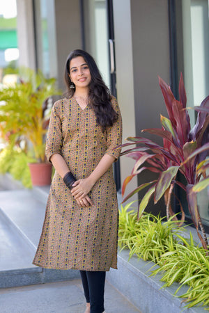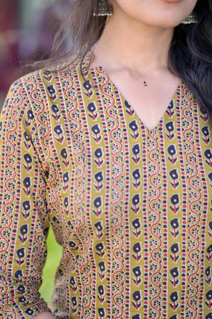 Kurti 92 - ajrakh hand block printed cotton kurta in green & black