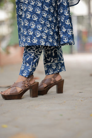 Lasya - handblock printed anarkali cotton suit set in indigo