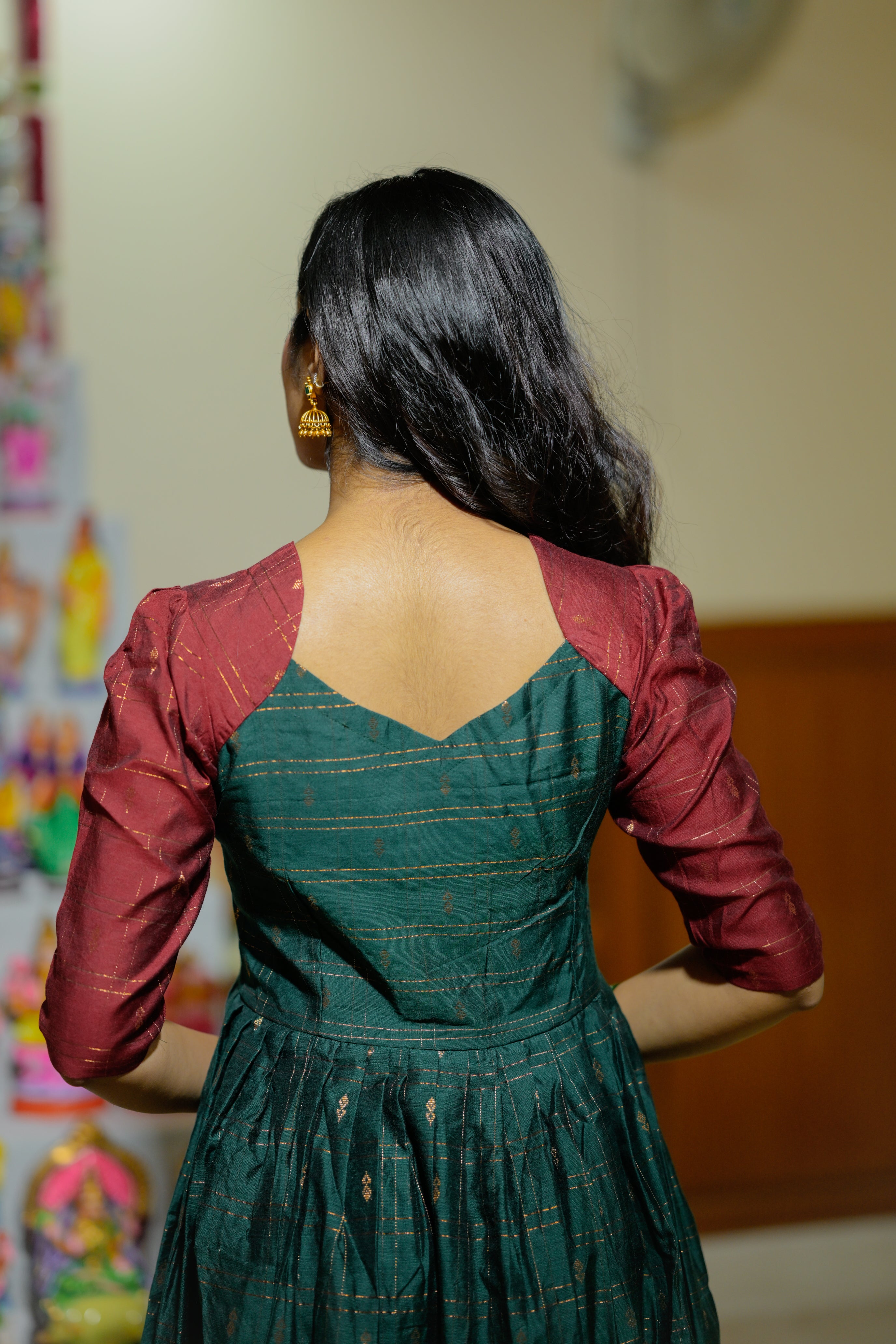 Mahalakshmi ( gown) - slub art silk gown in green and maroon