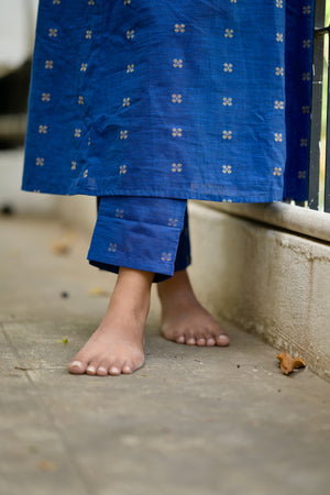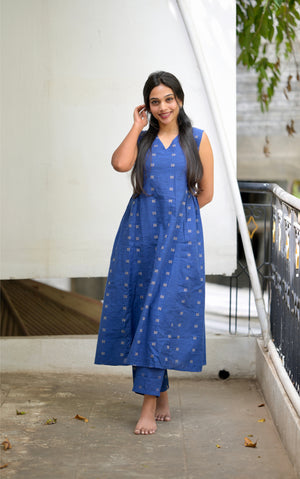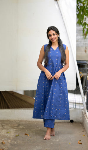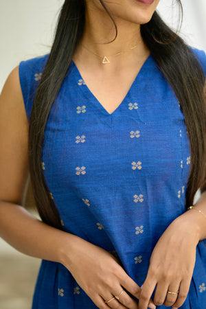 Maithili - handloom cotton A line coord set in pepsi blue