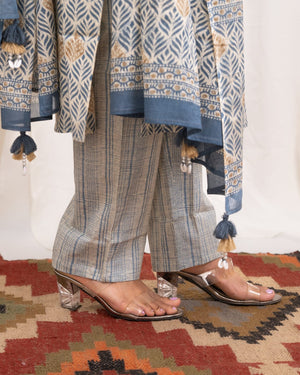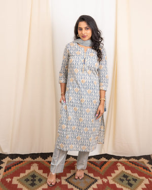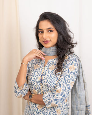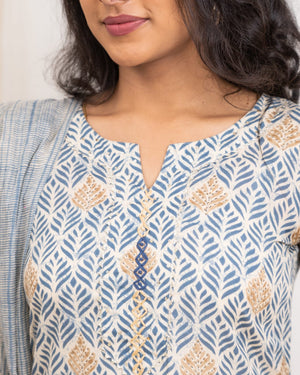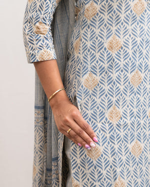 Manvi - mughal hand block printed suit set with hand work with matching dupatta