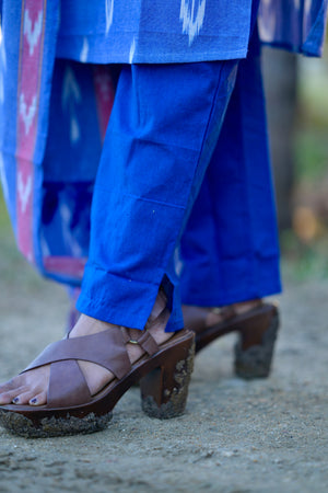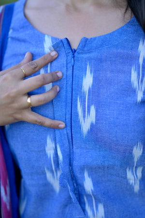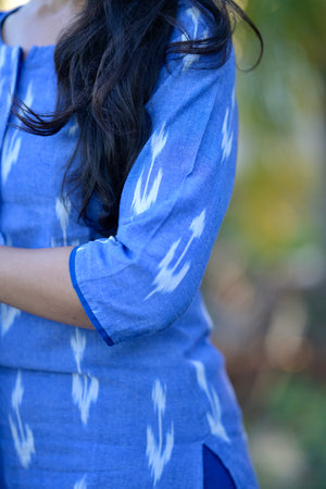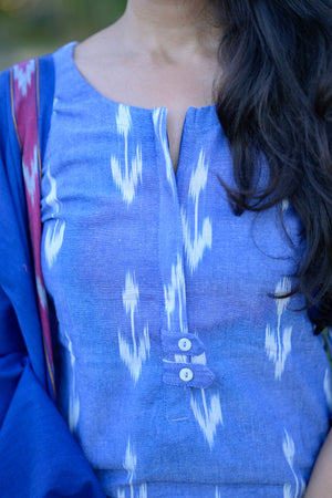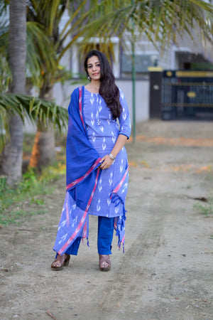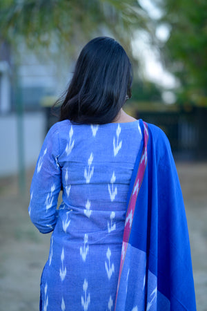Meghavi - pochampally ikkat handloom cotton suit set in denim & rexona blue