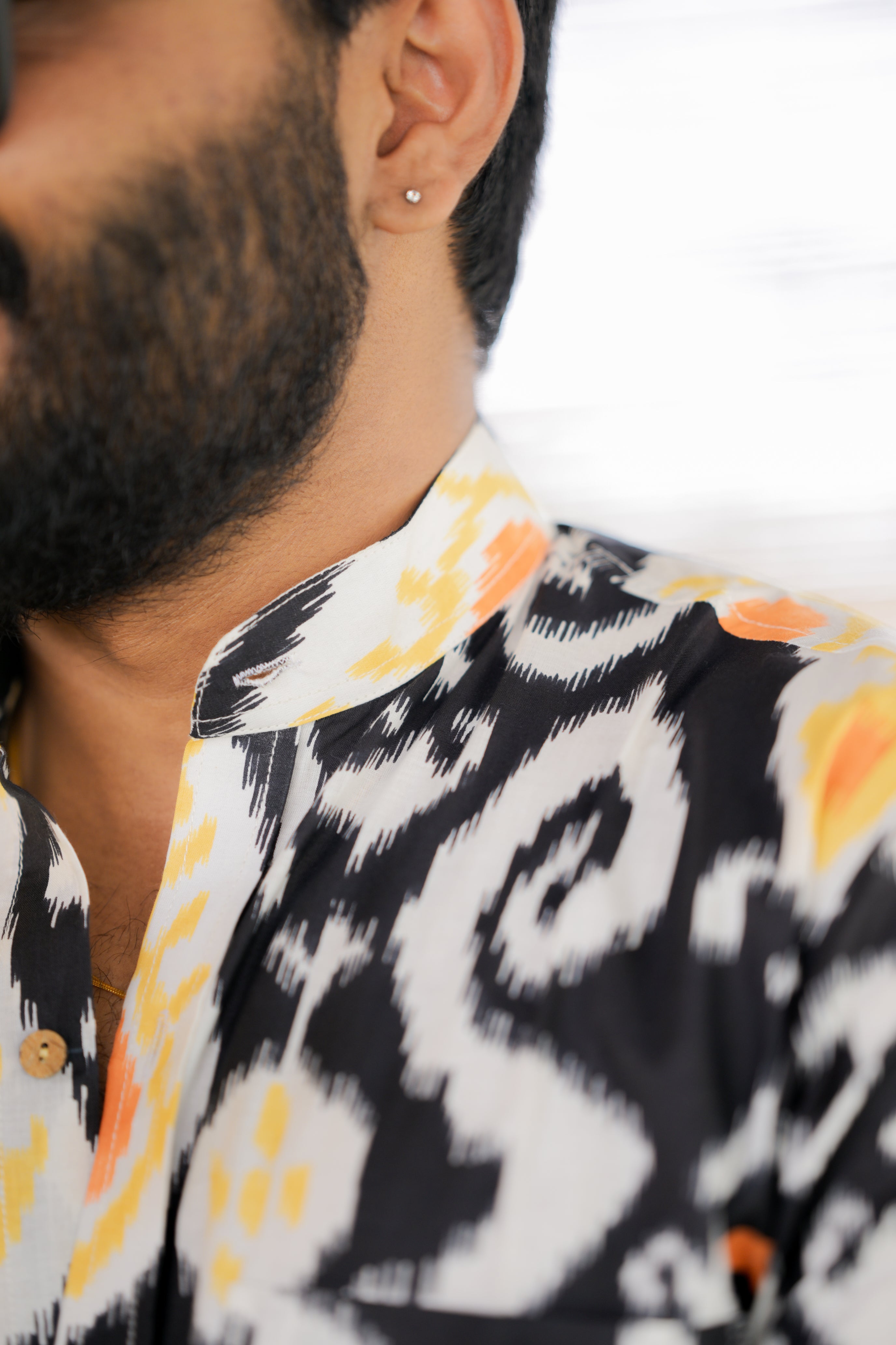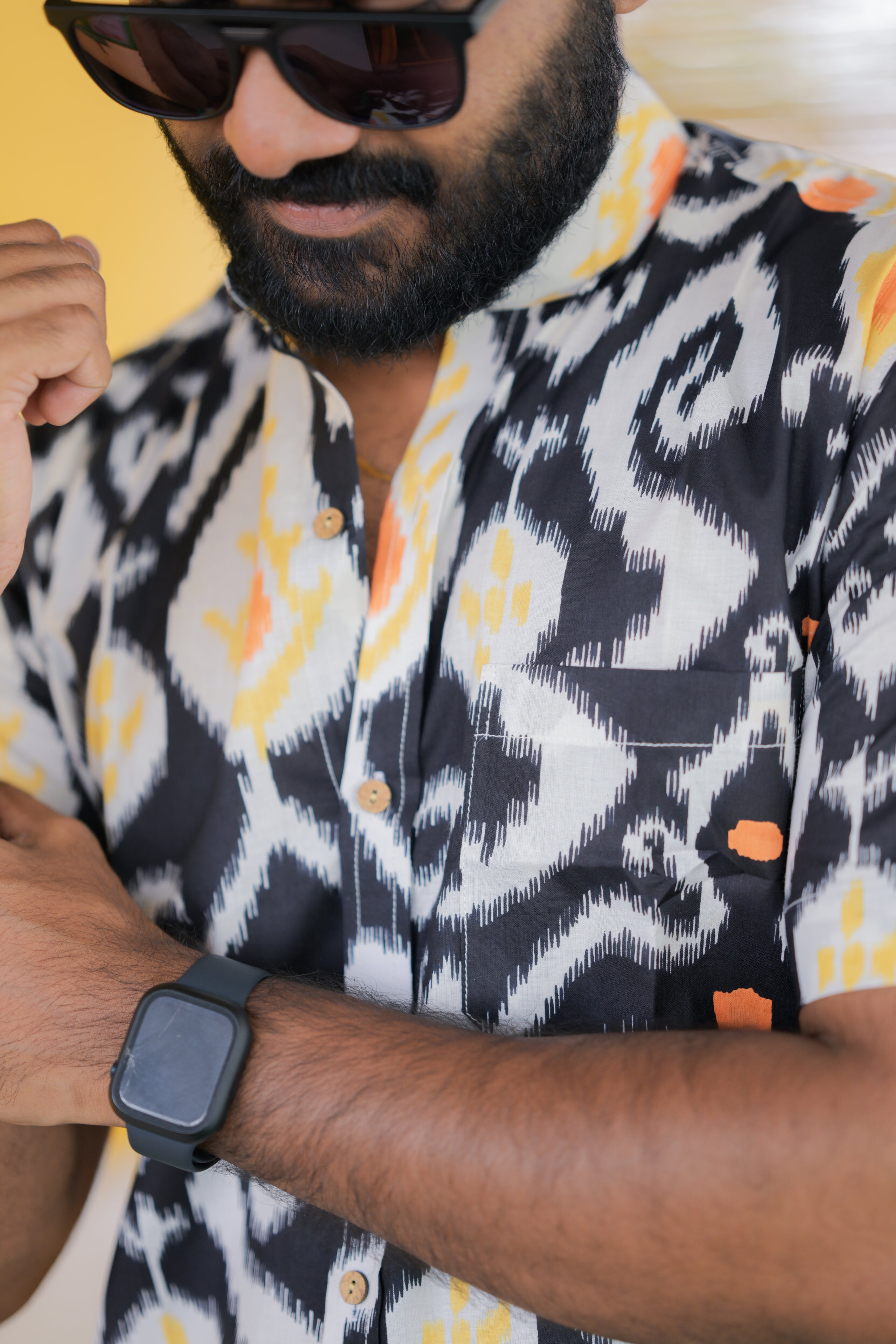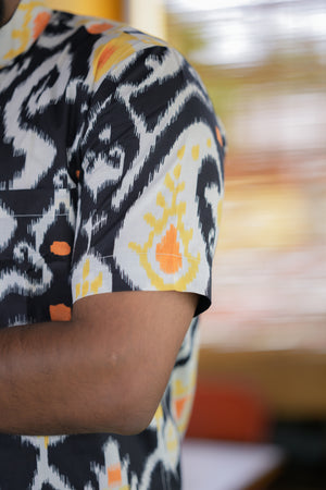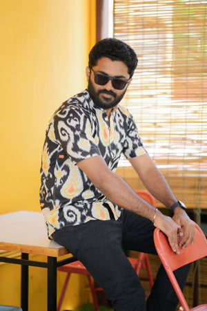 Shirt -26 - abstract handblock printed organic cotton shirt in black and yellow
