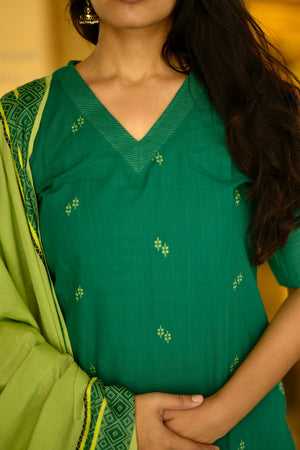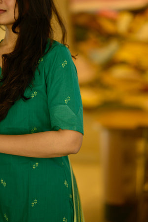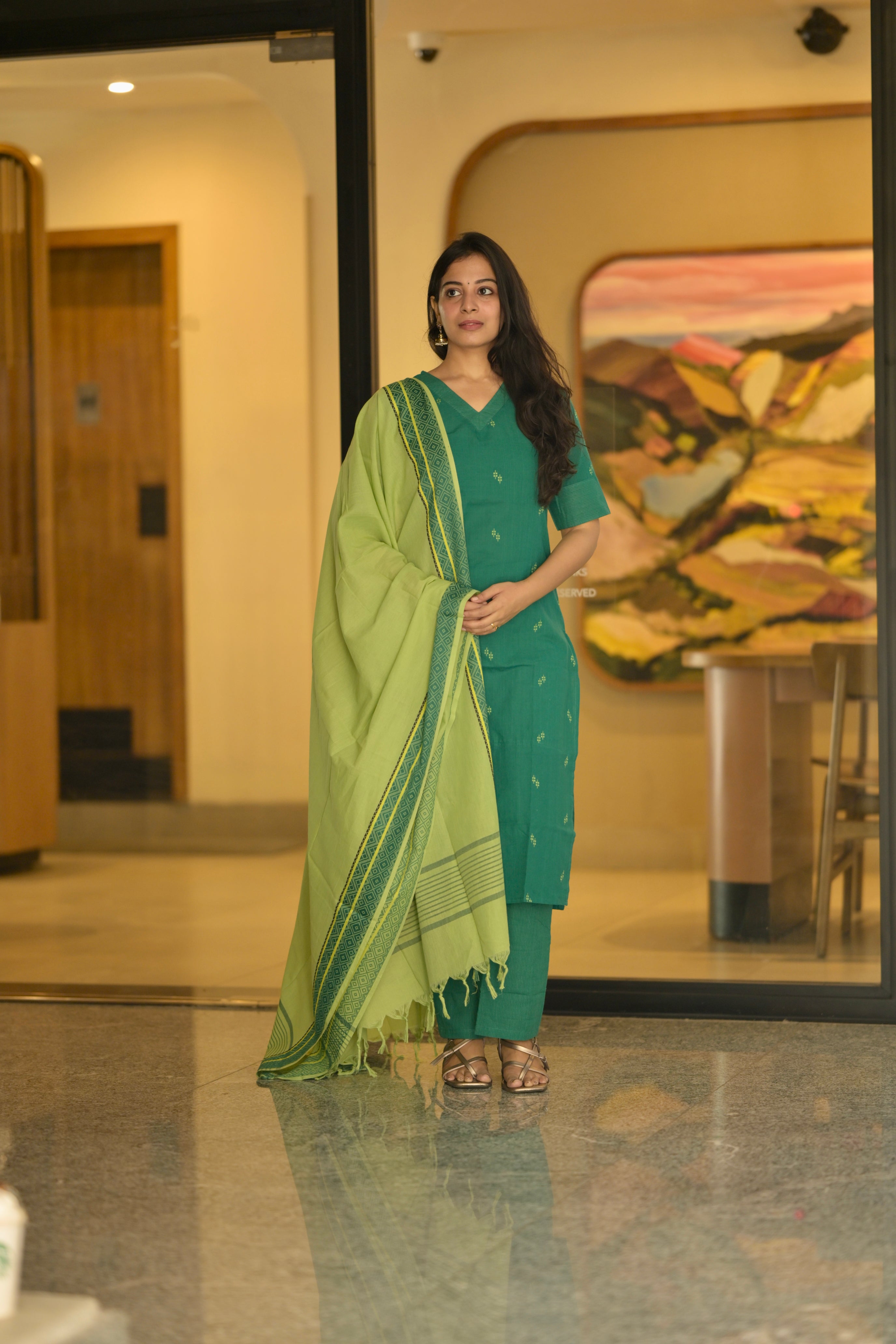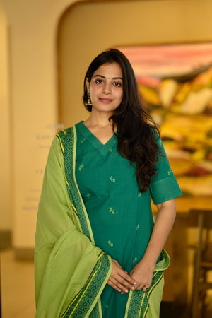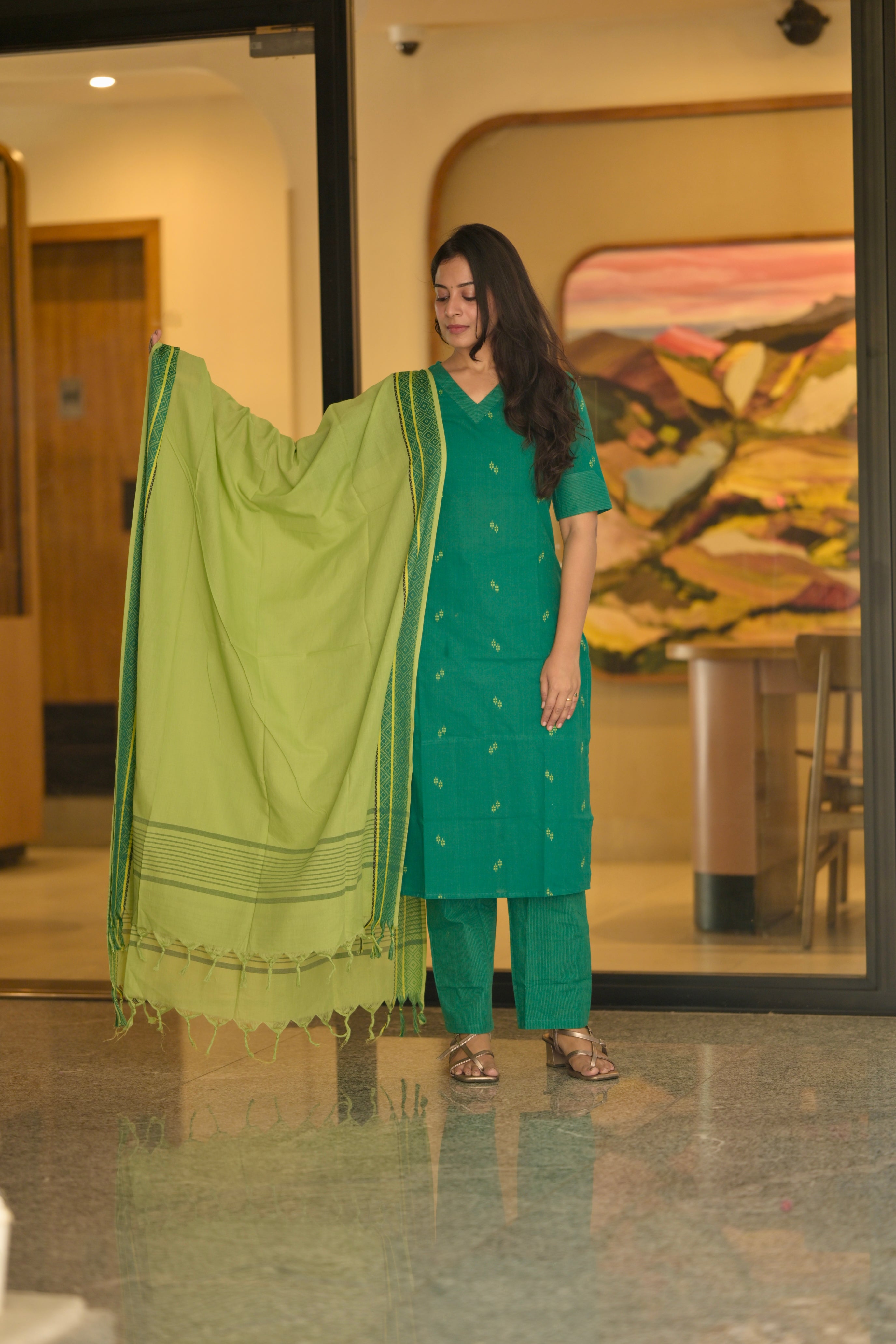 Mohini ( green ) - organic handloom cotton suit set in green colour